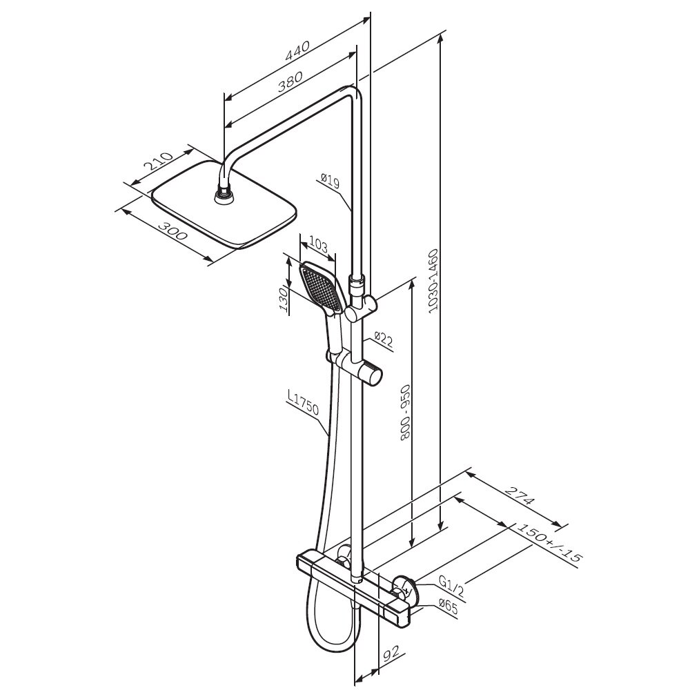 | Комплект поставки | Вентиль; Верхний душ; Держатель для лейки; Душевая лейка; Душевая штанга; Кронштейн для верхнего душа; Переключатель потоков; Смеситель; Шланг для душа |