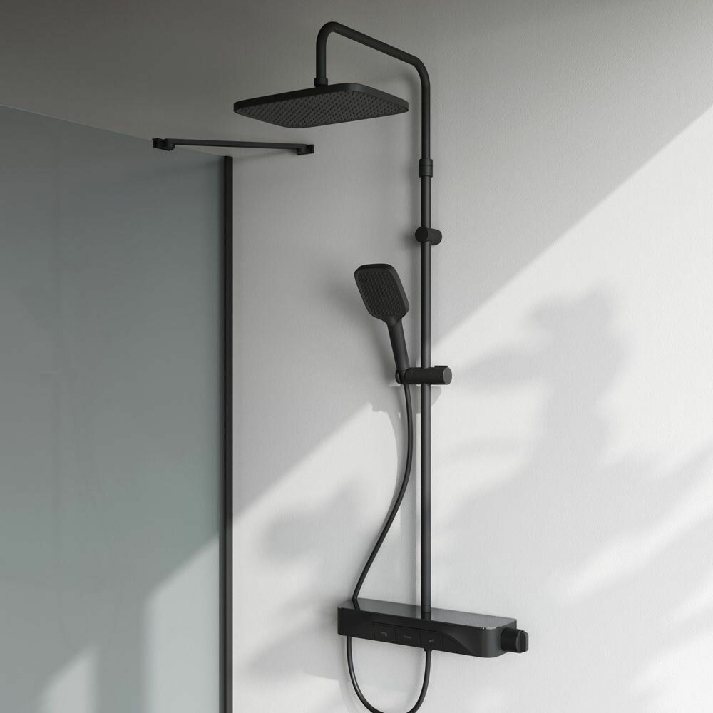 Встречайте коллекцию Func – самую функциональную коллекцию в линейке AM.PM. Инженеры продумали и учли каждую деталь, чтобы сделать процесс использования продуктов максимально простым и комфортным для всех членов семьи. Еще больше места для хранения: смеситель выполнен в виде вместительной полочки. Внушительный размер полки (40 см.) позволяет хранить все любимые средства под рукой, а эстетичный силуэт станет настоящим украшением современной ванной комнаты. Интуитивно понятное управление: всего одна удобная ручка для настройки температуры и потока воды. Ручка дополнена инновационным антискользящим покрытием, которое позволяет комфортно управлять душевой системой даже с мыльными руками. Переключение потоков воды осуществляется нажатием клавиши. Продуманные детали для удобства: телескопическая штанга регулируется по высоте, обеспечивая комфорт для людей любого роста. Трендовая прямоугольная форма, увеличенный размер леек и 3 режима ручного душа подарят ощущения настоящего домашнего SPA.