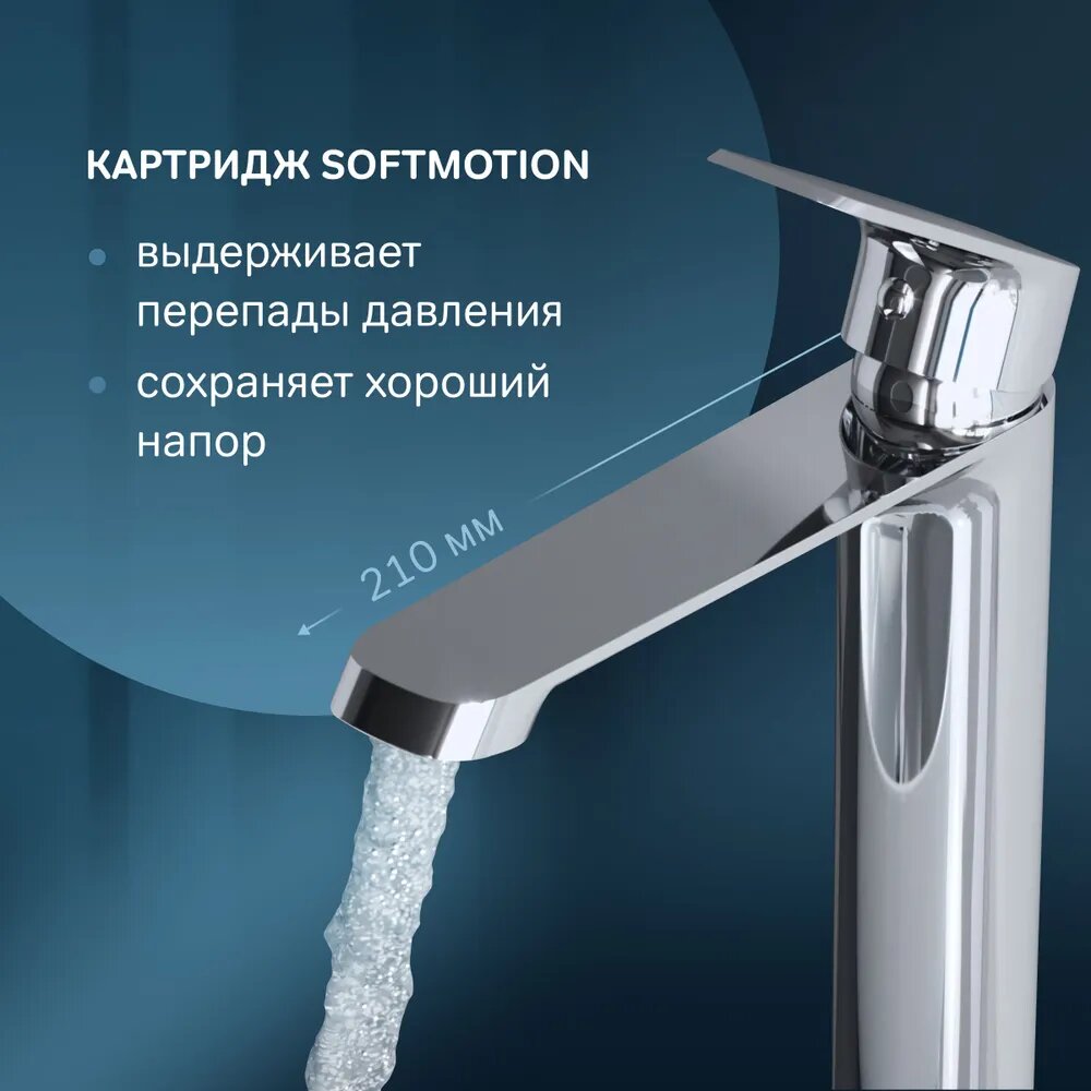 Встречайте коллекцию Func – самую функциональную коллекцию в линейке AM.PM. Наши инженеры продумали и учли каждую деталь чтобы сделать процесс использования продуктов максимально простым и комфортным для всех членов семьи. Безупречный внешний вид: яркий геометричный дизайн и утонченный силуэт – смеситель для раковины Func станет настоящим украшением современной ванной комнаты. Лаконичная ручка идеально ложится в ладонь что значительно облегчает процесс управления и регулировки температуры. Высокий излив – идеальный выбор для ванной комнаты с накладной раковиной. Специально спроектированный для АМ.РМ керамический картридж SoftMotion 35 мм позволяет выдерживать любые перепады давления в водопроводной сети сохраняя хороший напор и надежно защищая вас от ожогов