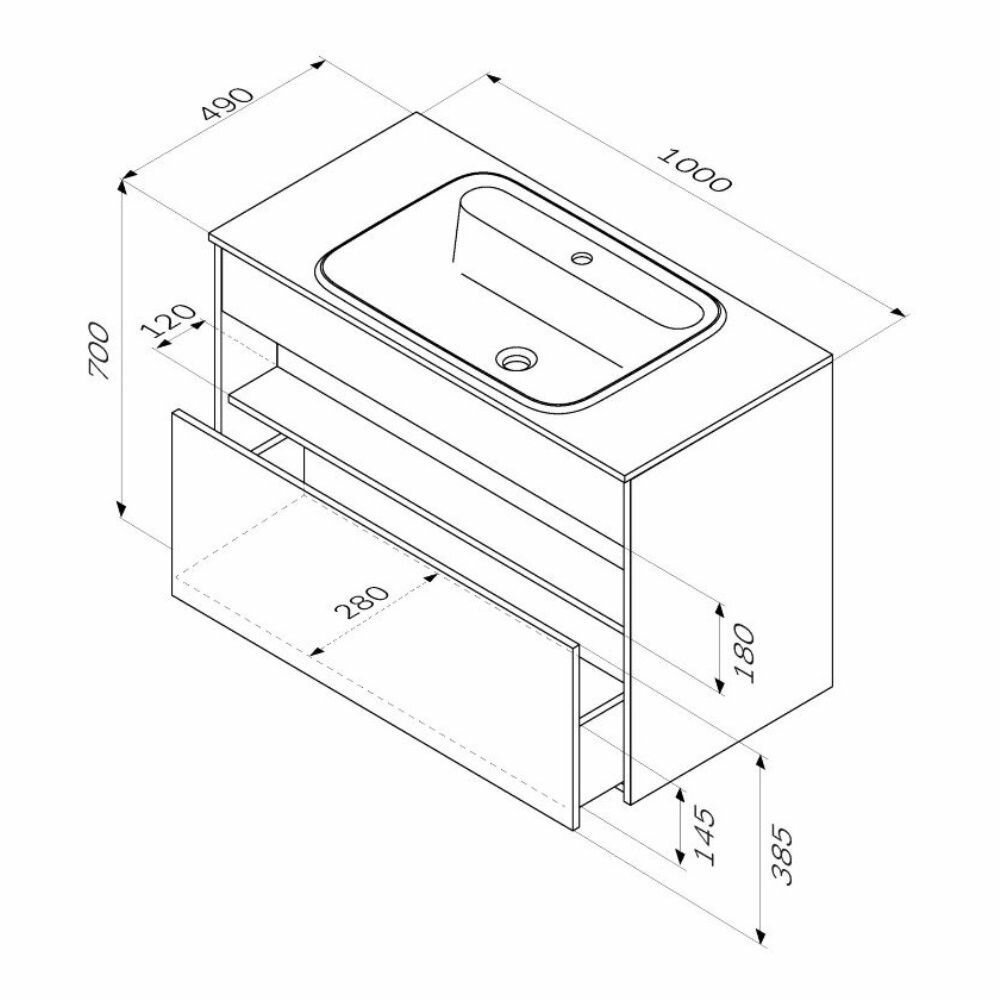 - Габариты корпуса тумбы (ШхВхГ): 1000х700х490 мм.