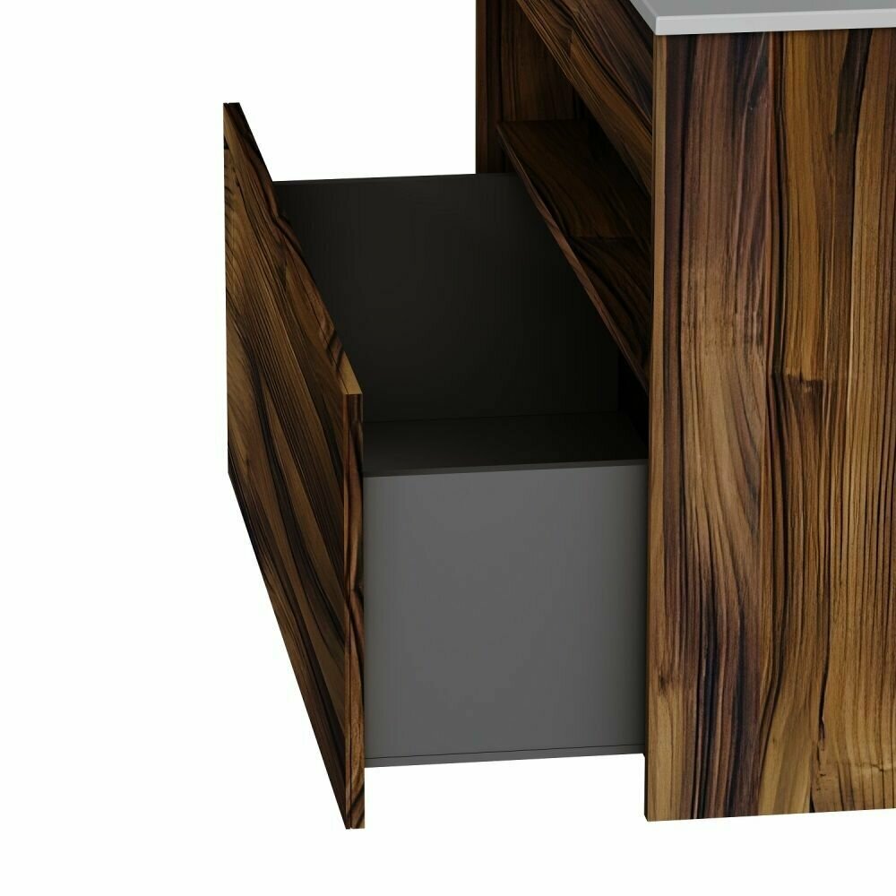 Коллекция мебели Func отличается своей функциональностью, вариативностью и мобильностью. Наши инженеры продумали и учли каждую деталь, чтобы сделать взаимодействие с продуктами максимально простым и комфортным для всех членов семьи. Удобный выдвижной ящик и вместительная открытая ниша позволяют хранить все необходимые средства под рукой. Невероятно мягкое открытие и закрытие благодаря направляющим скрытого монтажа с системой soft close. Универсальный монтаж подвесной и напольный (комплект ножек приобретается отдельно).