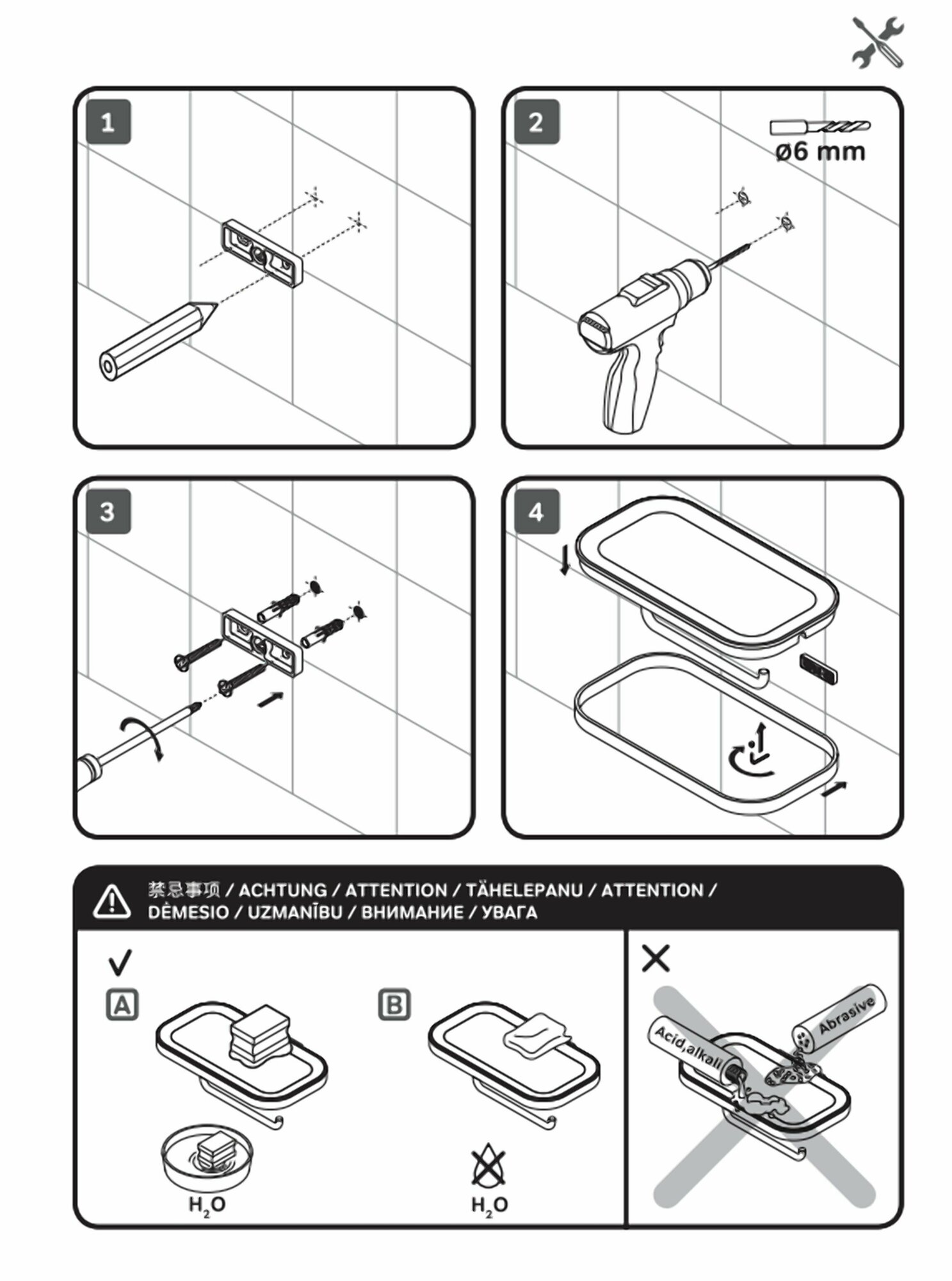 В комплекте поставки: Стеклянная мыльница с держателем, крепление, иснтрукция.