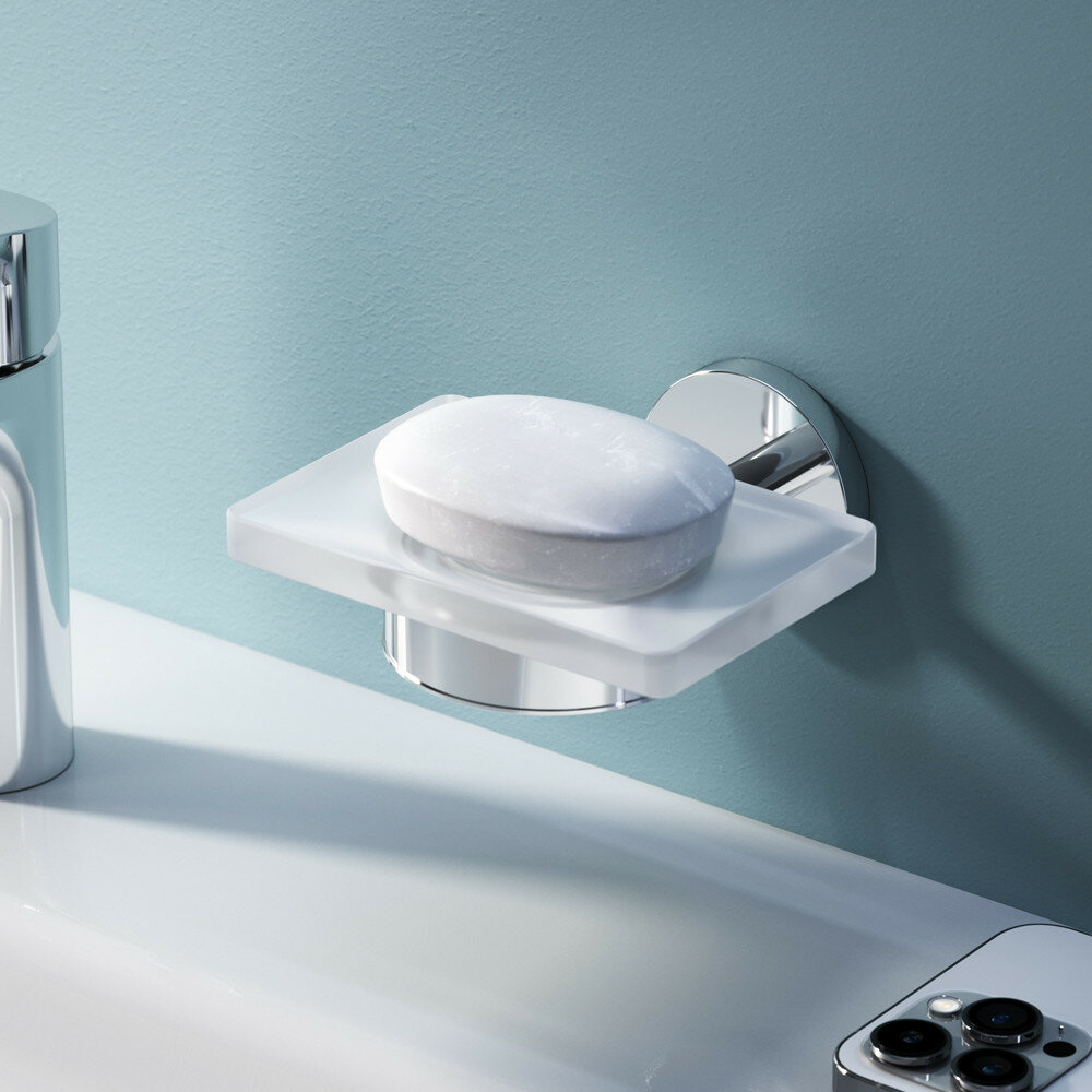 В комплекте поставки: Стеклянная мыльница с настенным держателем , крепление, иснтрукция.