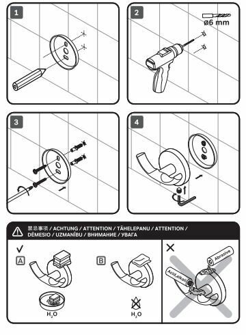 В комплекте поставки: Двойной крючок для полотенец, крепление, иснтрукция.