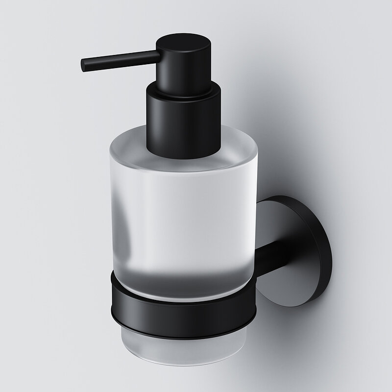 Самая провокационная коллекция сантехники – X-Joy не была наполненной без невероятных аксессуаров для ванной комнаты. Дизайн аксессуаров X-Joy принадлежит авторству собственной дизайн-студии бренда AM.PM из Германии. В основе дизайна аксессуаров – контраст между строгими квадратными и плавными округлыми формами. Это небанальное сочетание форм делает облик продуктов универсальным, что позволяет им вписаться в любой интерьер. Диспенсер для жидкого мыла X-Joy – незаменимый аксессуар для вашей ванной. Подвесная установка делает этот продукт невероятно удобным для использования. Продукт выполнен из сплава металлов высочайшего качества с матовым черным покрытием, устойчивым к механическим повреждениям, и матового стекла. Даже через 10 лет, аксессуары X-Joy будут выглядеть, как новые.