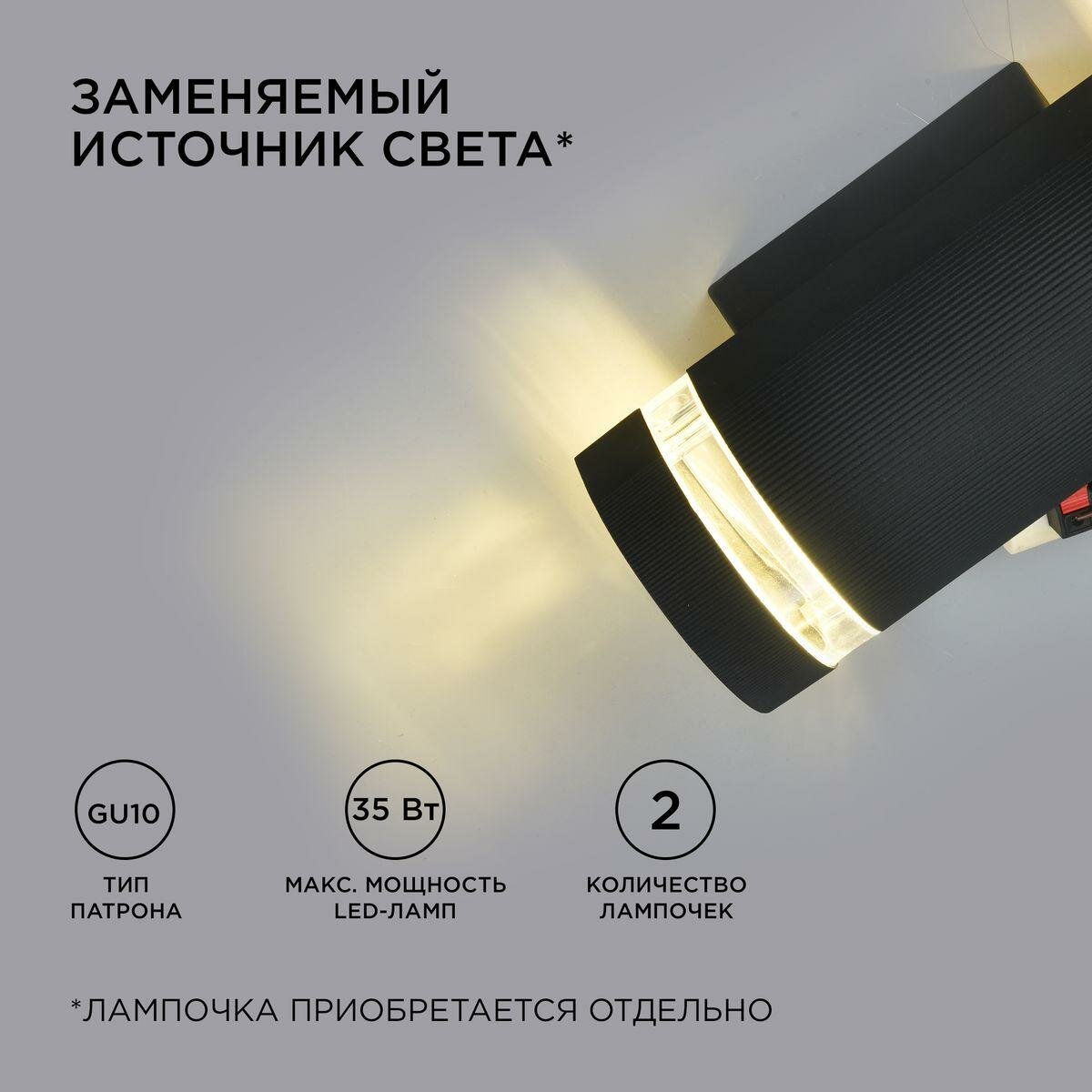 Светильник настенный уличный Apeyron 2хGU10 теплый белый свет цвет черный с датчиком движения