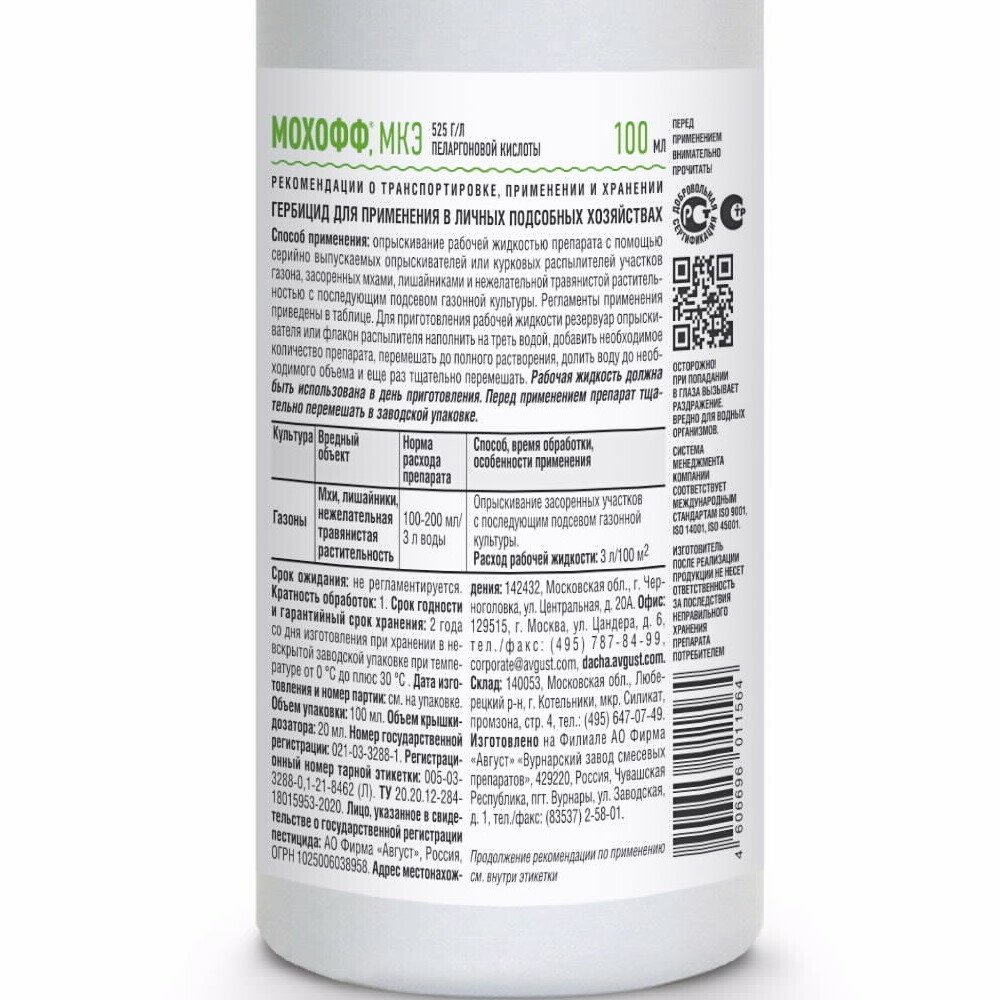 Представляем гербицид Мохофф от бренда Avgust — эффективное средство для борьбы с сорняками и мхом, которое поможет сохранить ваш газон и садовые дорожки в идеальном состоянии. Объем 100 мл обеспечивает удобство использования и экономичность.