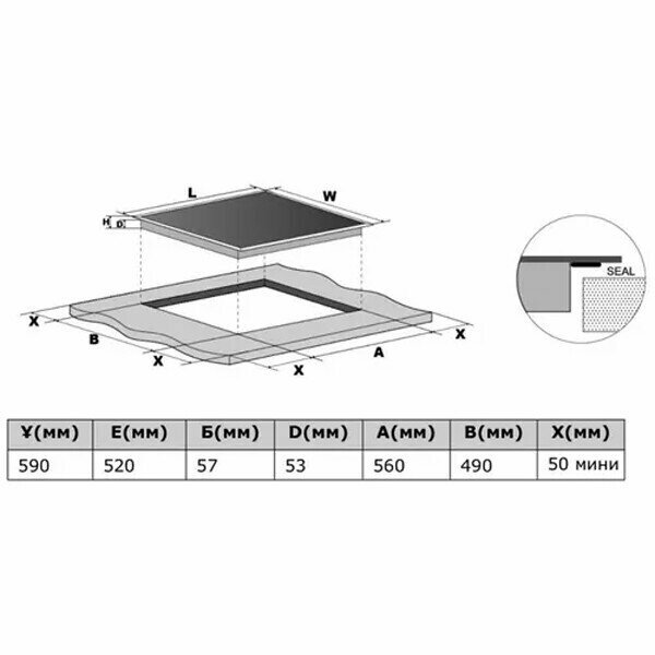 | Ширина встраивания (см) | 56.0 |