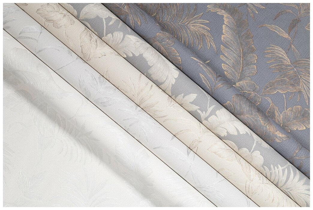Обои виниловые горячего тиснения на флизелиновой основе. Размер рулона 1,06х10м. Технические характеристики: хорошая светоустойчивость, высокая устойчивость к мытью. Влажное дыхание тропического леса, где природа создала вечнозеленый рай из папоротников, бамбука и пальм, ощущается в коллекции Tropicanis. Монохромные тропические листья уютно собраны на текстильном фоне точно в гербарии. Контуры деликатно подчеркивает драгоценный декор из серебра и нежного золота, что кажется, будто листья светятся изнутри. Тканевая тема повторяется в компаньоне, чья