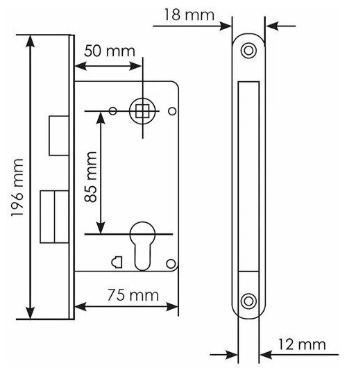 Замок с ригелем под ключевой цилиндр для межкомнатной двери комплектуется с ключевым цилиндром, соответствующим ширине полотна. Подходит для установки, например, на дверь кабинета. Для надежности запирания помимо обычного язычка, используется дополнительный ригель.