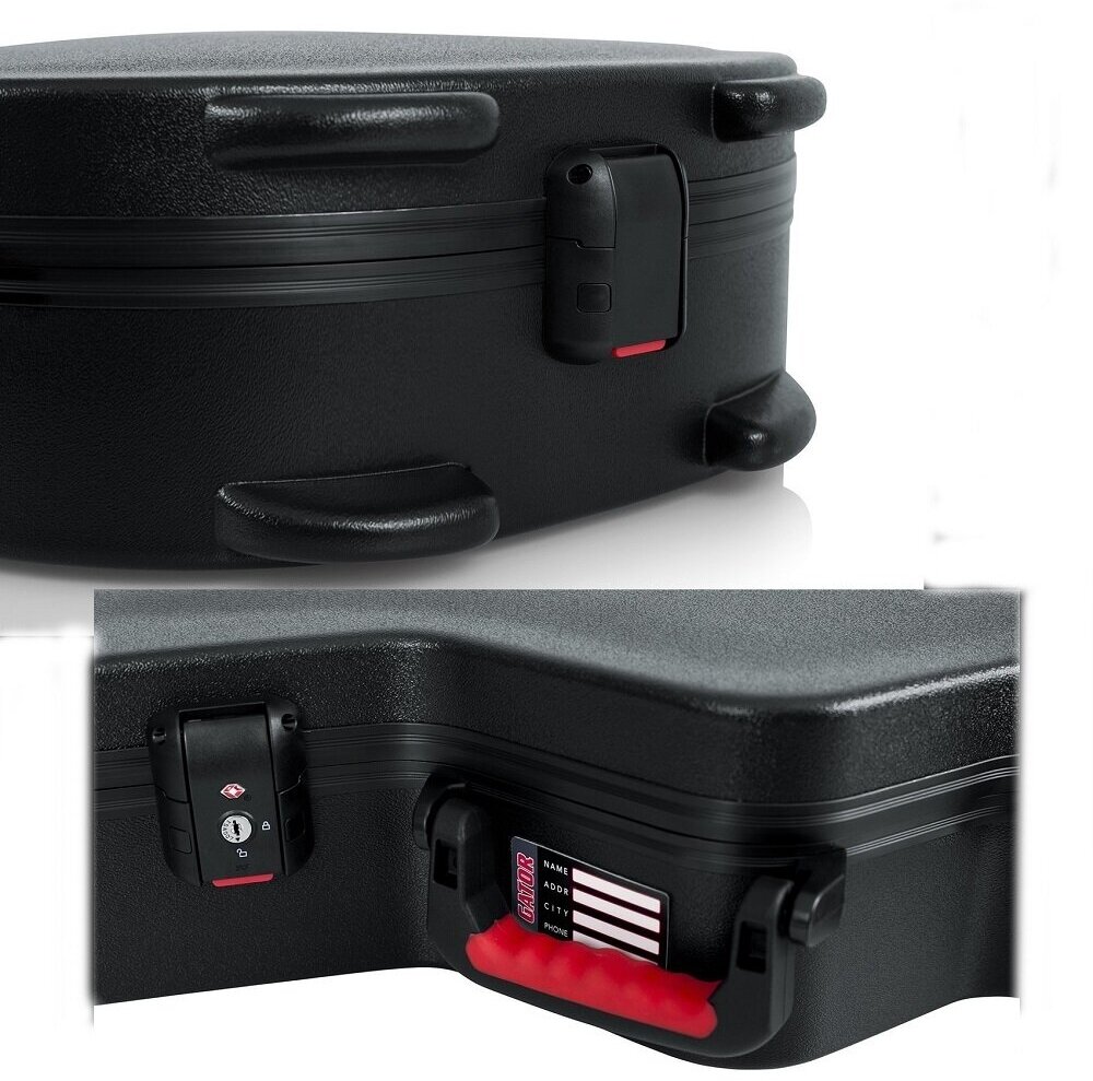 Пластиковый кейс Gator для полуакустических электрогитар типа Гибсон 335. Прочный, ударостойкий пластиковый корпус. Кейс для полуакустических электрогитар Gator идеально подойдет для авиаперелетов. Внутренняя плюшевая отделка защитит инструмент от царапин. Мягкая эргономичная ручка для переноски, защелки TSA. Центральный замок защелка. Специальные отсеки для хранения аксессуаров. Длина деки: 571 мм. Высота деки: 114 мм. Ширина деки: 419. Длина общая: 1092 мм. Вес: 5 кг