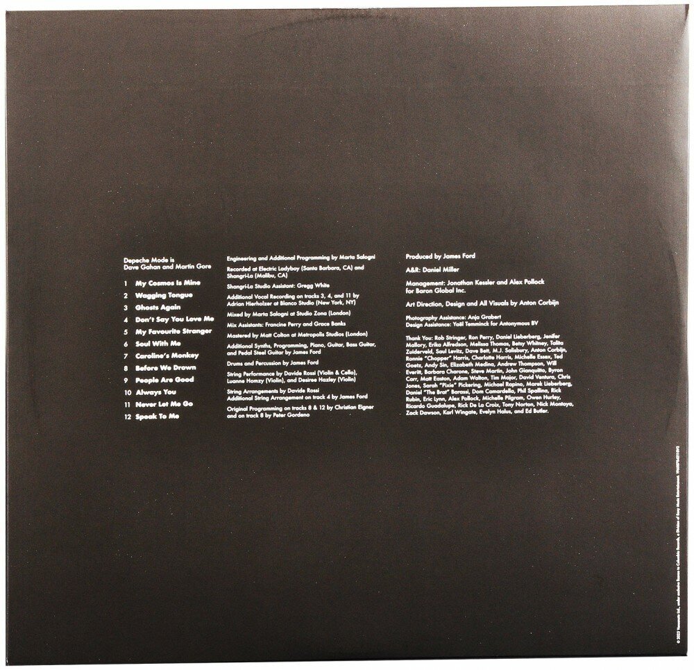 Memento Mori - пятнадцатый студийный альбом Depeche Mode, вышедший в 2023 году. Альбом прервал пятилетний перерыв в дискографии группы, наступивший после выхода их предыдущего альбома, Spirit в 2017 году и заслужил высокую оценку у музыкальных критиков. Издание на двух чёрных 180-гр винилах в тройном разворотном конверте содержит постер. Лицевая сторона конверта с тиснением. Первый диск с записью на двух сторонах, второй диск с односторонней записью, на второй стороне - гравировка. Depeche Mode - британская музыкальная группа, образованная в 1980 году в городе Базилдон (графство Эссекс). Постоянные участники группы - Мартин Гор (клавишные, гитара, бэк-вокал, вокал, автор песен), Дэйв Гаан (вокал) продолжают успешно выступать, клавишник Энди Флетчер ушёл из жизни в 2022 году. Музыкантам Depeche Mode удалось сочетать электронное звучание с элементами рок- и поп-музыки и стать одной из самых популярных групп в мире. В активе Depeche Mode свыше 100 млн проданных записей, выступления перед 30 млн фанатов по всему миру. Студийные альбомы Depeche Mode попадали в Топ-10 более чем в 20 странах, в том числе в Великобритании и США. Альбом 2013 года, DeltaMachine, дебютировал в качестве альбома на первой строчке в хит-парадах 12 стран. На концертах в поддержку этого альбома, организованных Depeche Mode по всему миру побывали более 2.5 млн. человек.