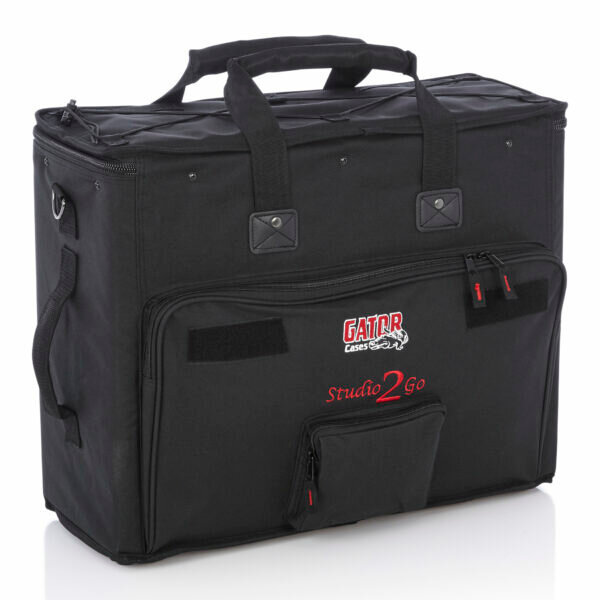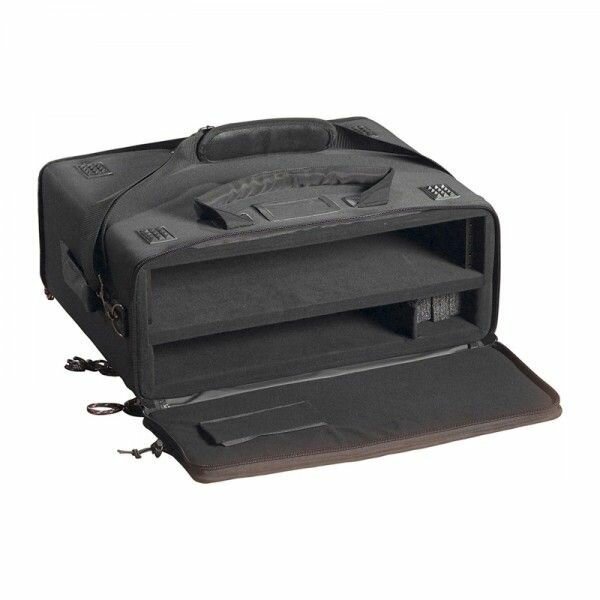 Нейлоновая рэковая сумка. Карман для ноутбука. Карман для аксессуаров. Отделение для 2U рэковой аудиосборки. Колёса и выдвижная ручка.