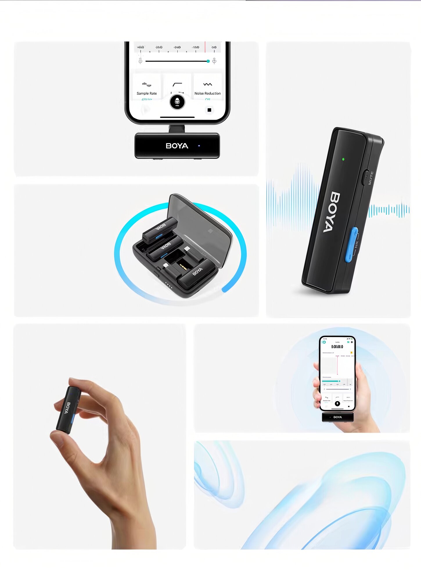 Системы Boya BY-XM6 это невероятно лёгкие, миниатюрные и простые в использовании системы беспроводных микрофонов. Встроенный всенаправленный микрофон обеспечивает чистый, свободный от посторонних шумов звук, а благодаря использованию цифровой передачи на открытых частотах (2.4 ГГц) система защищена от включения посторонних радиопомех. Система BY-XM6 подходит для создания контента, ведения видеоблогов, мобильной журналистики и многого другого. В данный комплект входит зарядный кейс для удобства работы.Благодаря использованию технологии AFH (Adaptive Frequency Hopping) система постоянно сканирует диапазон частот и автоматически выбирает наименее загруженные. Максимальная дальность работы составляет 100 метров (при условии прямой видимости, без препятствий). Вход для внешнего микрофона позволяет подключить малозаметный петличный микрофон (идет в комплекте). На ресивере также предусмотрен выход для наушников для мониторинга звука в режиме реального времени. Микрофонный выход ресивера переключается между режимами моно и стерео через меню. В комплекте идет 2 кабеля: TRS для фото-, видеокамер, аудиорекордеров и других звукозаписывающих устройств, TRRS – для гарнитурного входа смартфонов, ноутбуков и настольных ПК. Система работает от встроенных литий-ионных аккумуляторов, которые заряжаются по USB (порт USB-C) или в специальном зарядном кейсе.