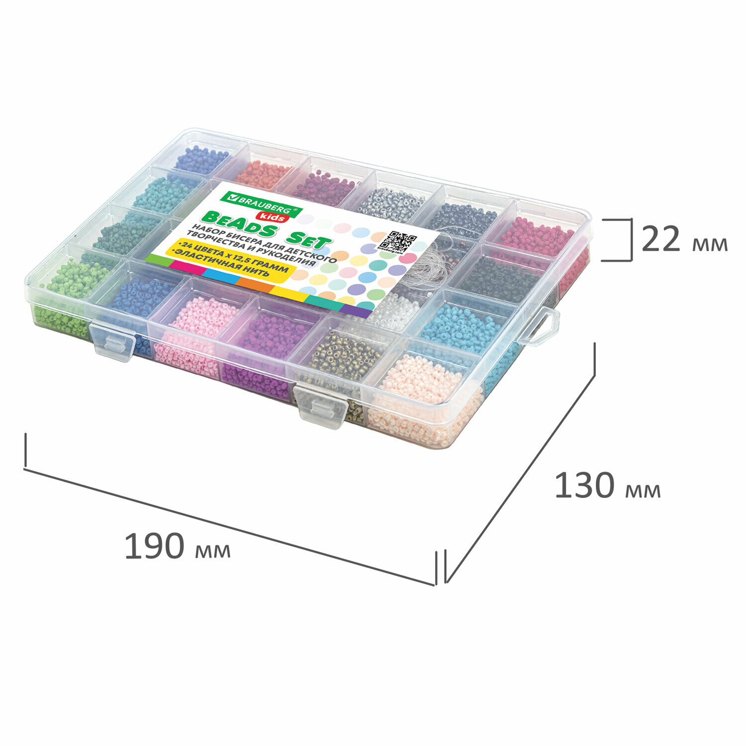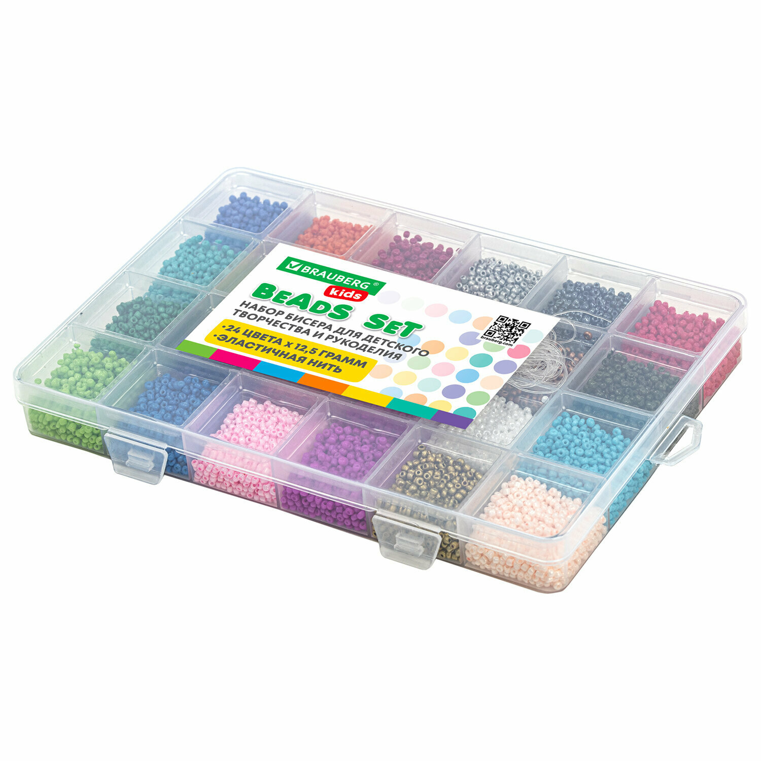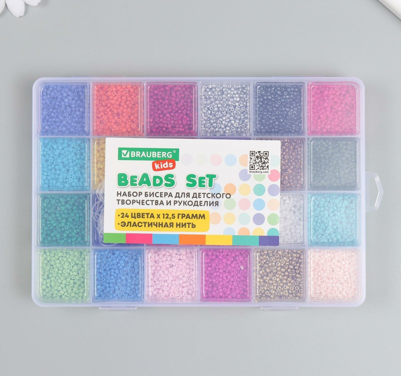 Набор бисера для детского творчества и рукоделия BRAUBERG KIDS идеально подходит для бисероплетения, вышивания бисером, фактурных картин, сувениров, интерьерного декора, создания разнообразных ярких и оригинальных украшений: браслетов, ожерелий, бус, фенечек, чокеров, серёжек, брелоков, фигурок животных, книжных закладок, жгутов, брошей и многого другого.