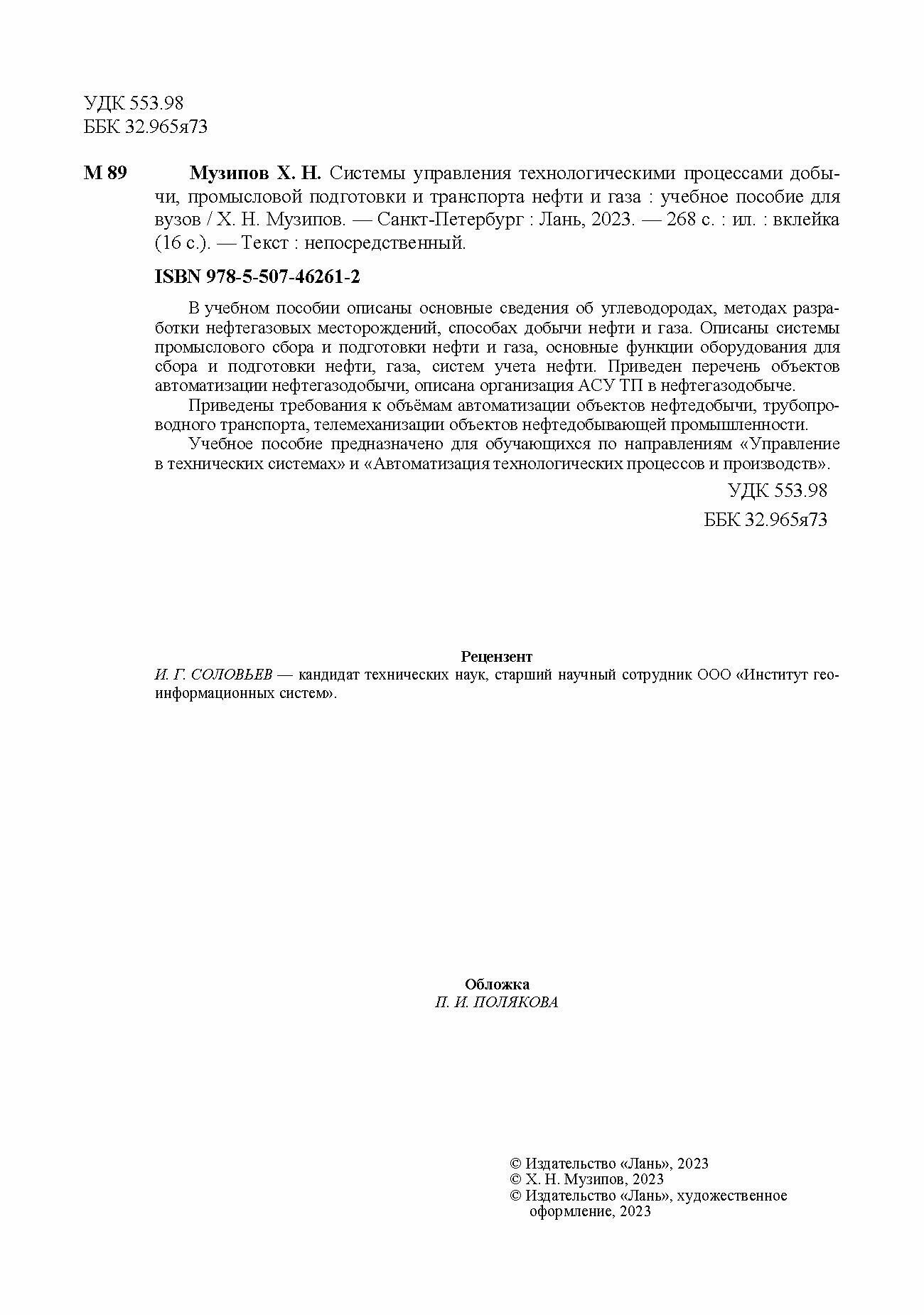 Системы управления технологическими процессами добычи промысл. подготовки и транспорта нефти и газа (Х. Н. Музипов); Издательство ЛАНЬ, 2023