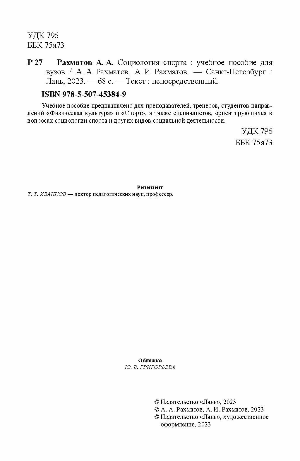Социология спорта. Учебное пособие (Рахматов Александр Ахмедович, Рахматов Ахмеджан Ибрагимович); Лань, 2023