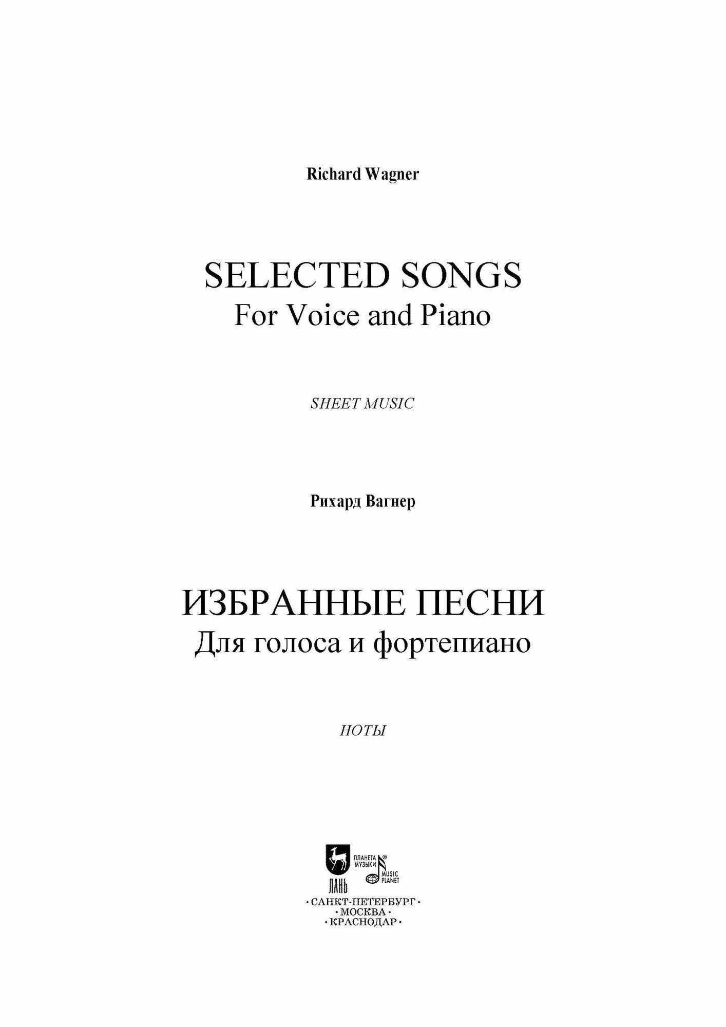 Избранные песни. Для голоса и фортепиано. Ноты (Вагнер Рихард); Планета Музыки, 2023