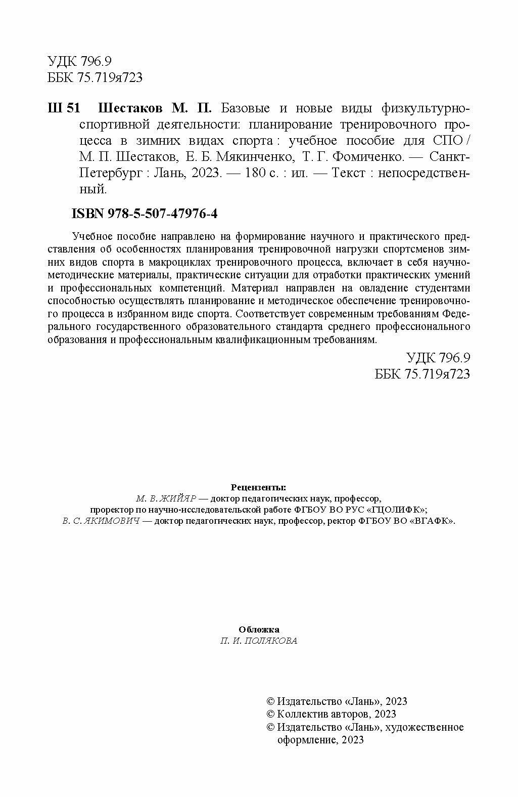 Базовые и новые виды физкультурно-спортивной деятельности. Планирование тренировочного процесса (Шестаков Михаил Петрович, Мякинченко Евгений Борисович, Фомиченко Татьяна Германовна); Лань, 2023