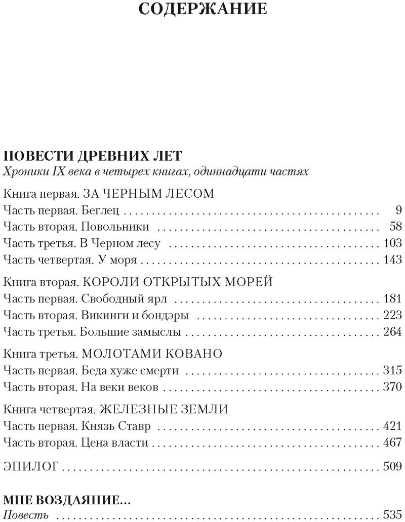 Вниманию читателей предлагается вторая часть трилогии - "Повести древних лет" (1955), а также тематически дополняющая ее повесть "Мне воздаяние…" (1968). На страницах "Повестей..." автор обращается к IX веку и увлекательно рассказывает о жизни наших далеких предков, переселенцев из Великого Новгорода. Обосновавшись на богатом побережье Белого моря, они мирно соседствуют с туземными племенами, но вскоре оказываются вовлеченными в жестокую борьбу с морскими разбойниками-норманнами во главе с Оттаром, бесстрашным и беспощадным викингом...
