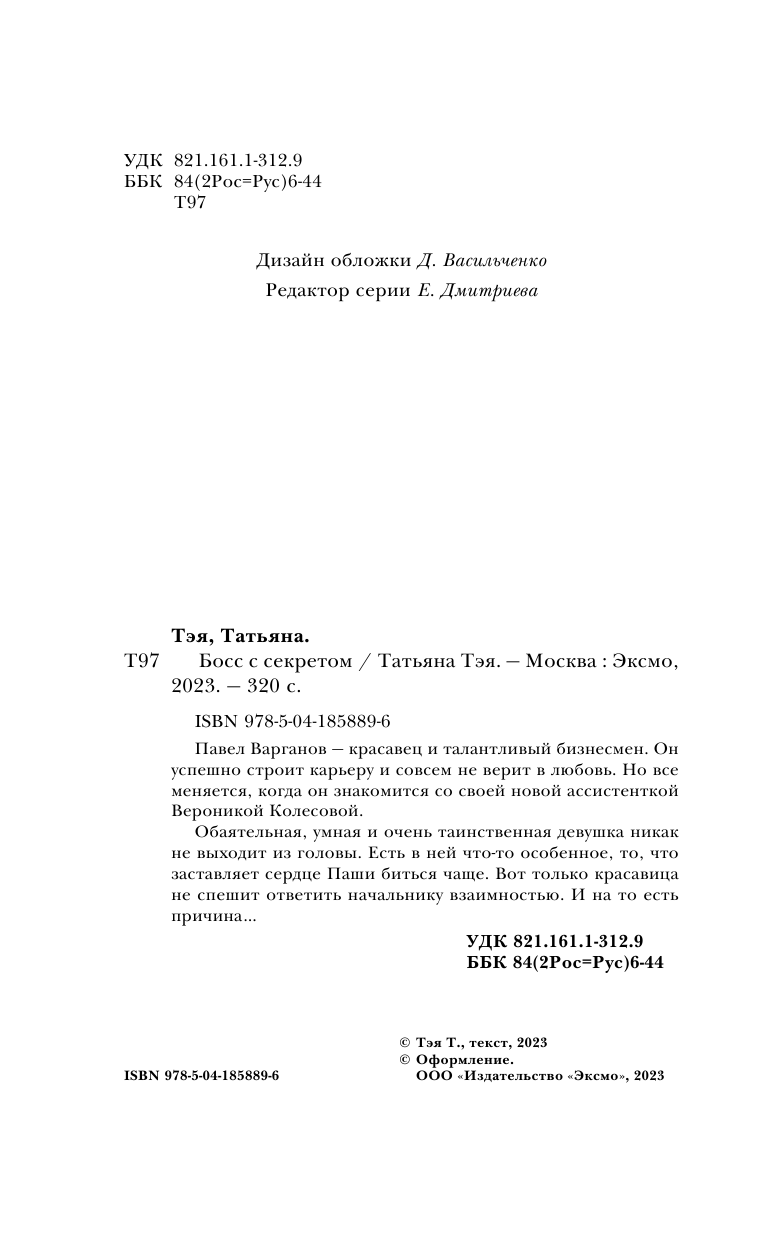 Книга: Босс с секретом (Татьяна Тэя); Эксмо, Редакция 1, 2023