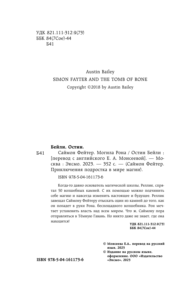 Сервис сравнения цен СкидкаГИД предлагает сравнить цены на товар «Книга: Саймон Фейтер. Могила Рона (#2) (Бейли Остин); ООО "Издательство "Эксмо", 2023»