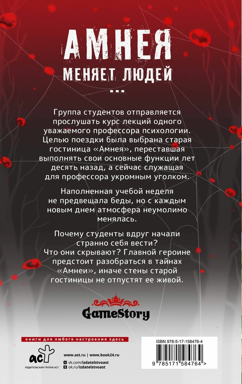 Почему студенты вдруг начали странно себя вести? Что они скрывают? Главной героине предстоит разобраться в тайнах «Амнеи», иначе стены старой гостиницы не отпустят ее живой.