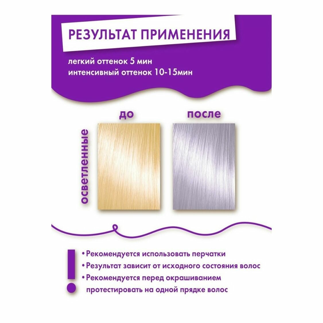 | Способ применения | Нанесите на чистые влажные волосы, оставьте на 5 мин. затем тщательно смойте тёплой водой. Для получения более интенсивного оттенка рекомендуем оставить на волосах на 10-15 мин. |