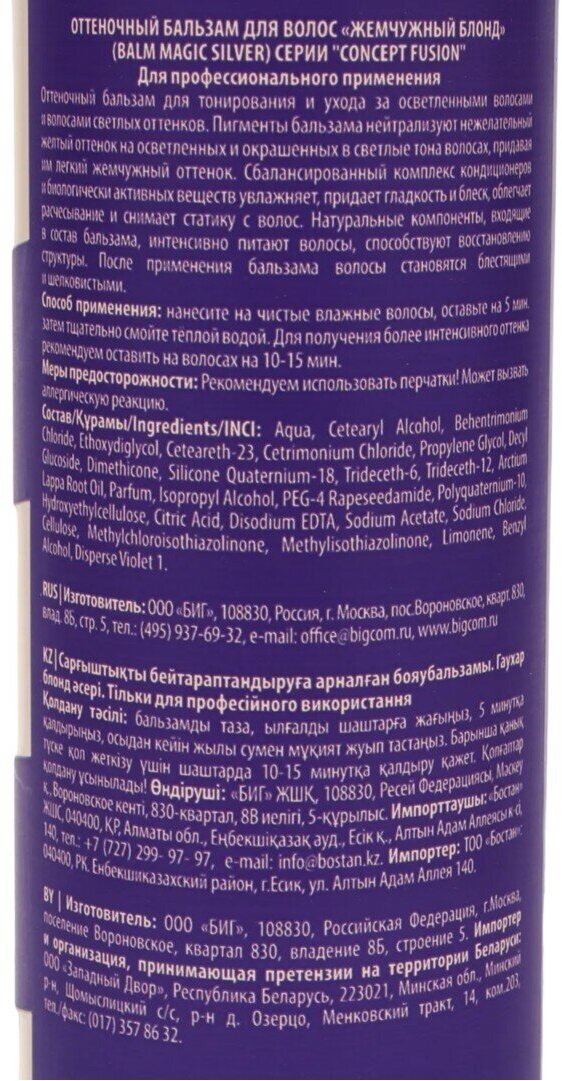 Бальзам оттеночный Сoncept Fusion Magic Silver Арктический блонд 400мл БиГ