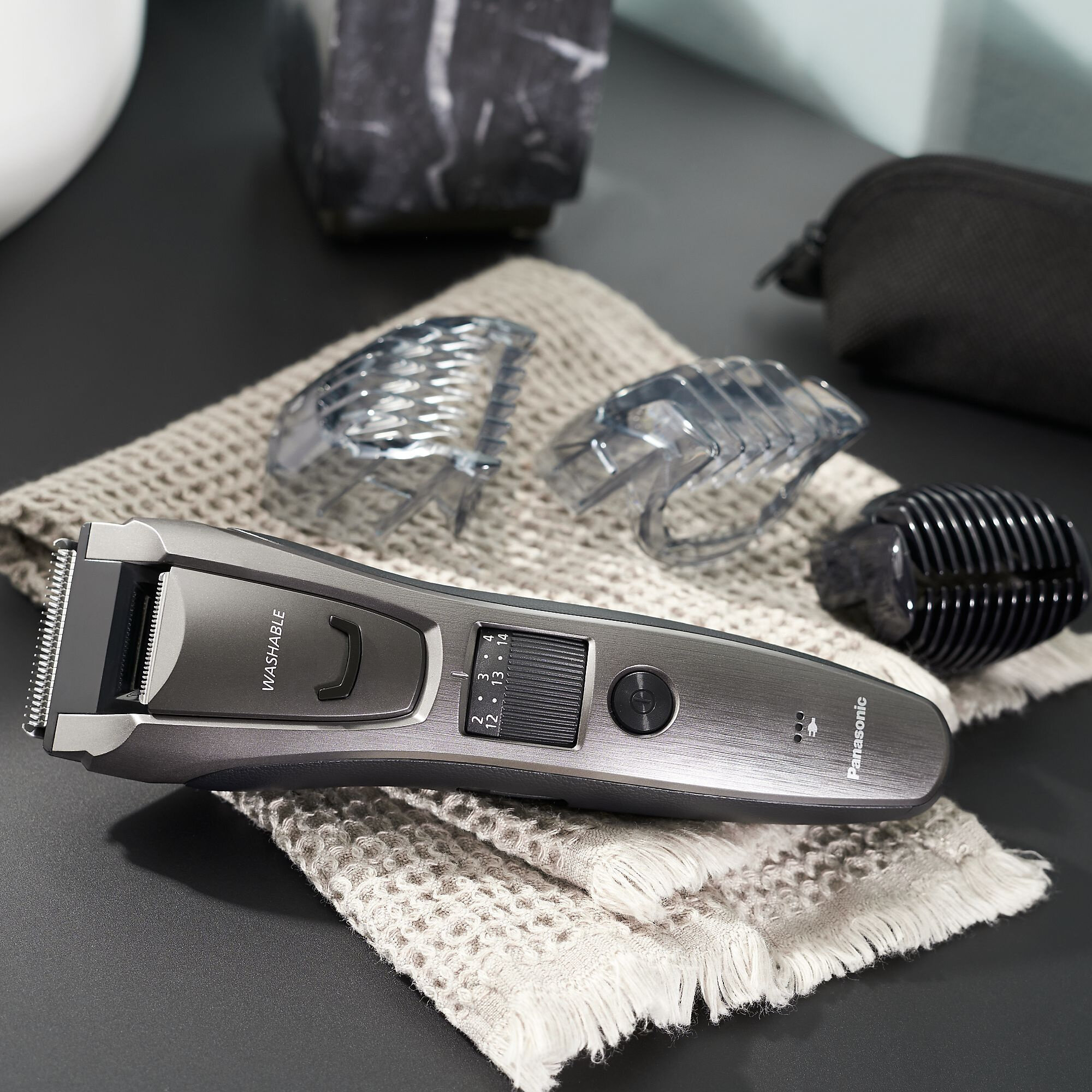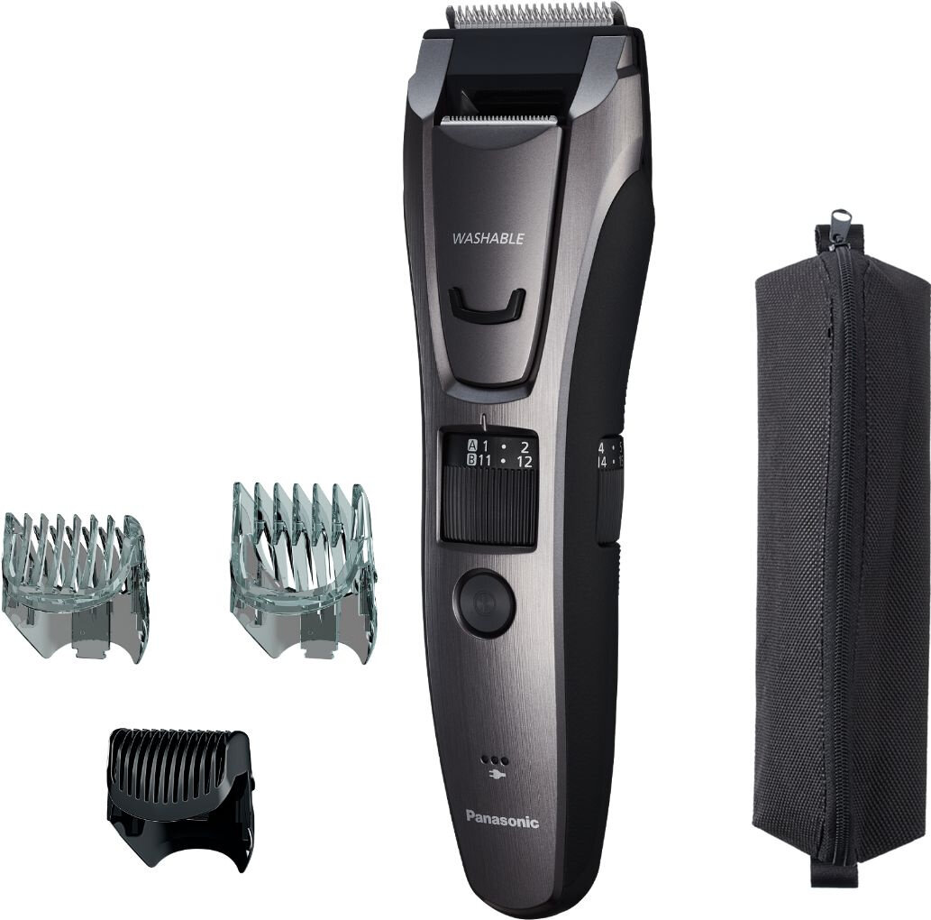 Машинка для стрижки Panasonic серебристый, насадок в комплекте 3шт, питание от сети и аккумулятора