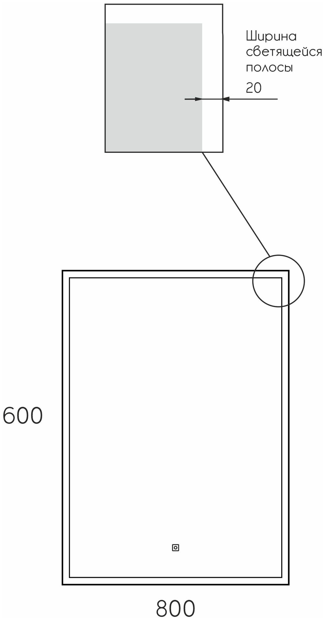 Модель: Ghost 600х800 RF5223GH с подсветкой Черное с сенсорным выключателем, диммером и часами