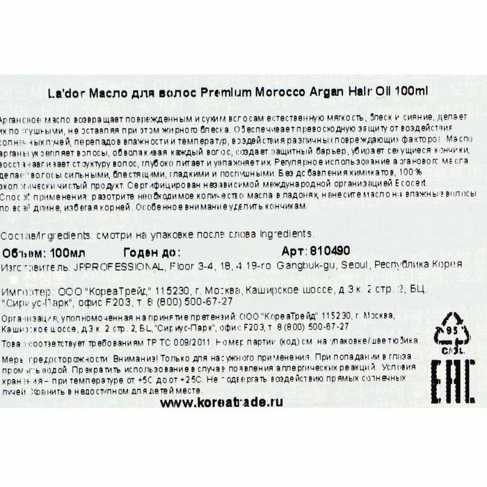 Ладор масло для волос марокканское аргановое 100мл COSON Co (125894)