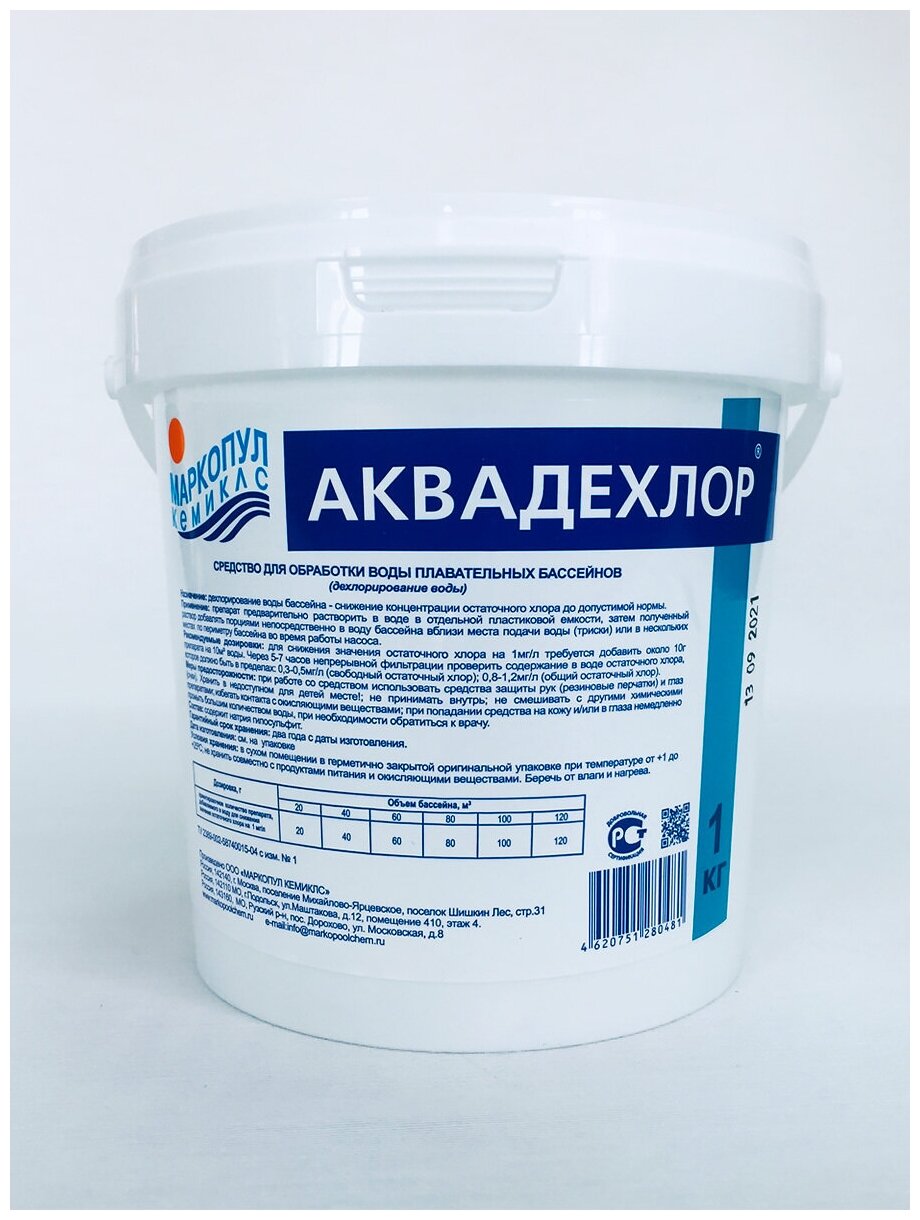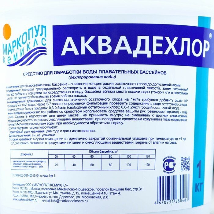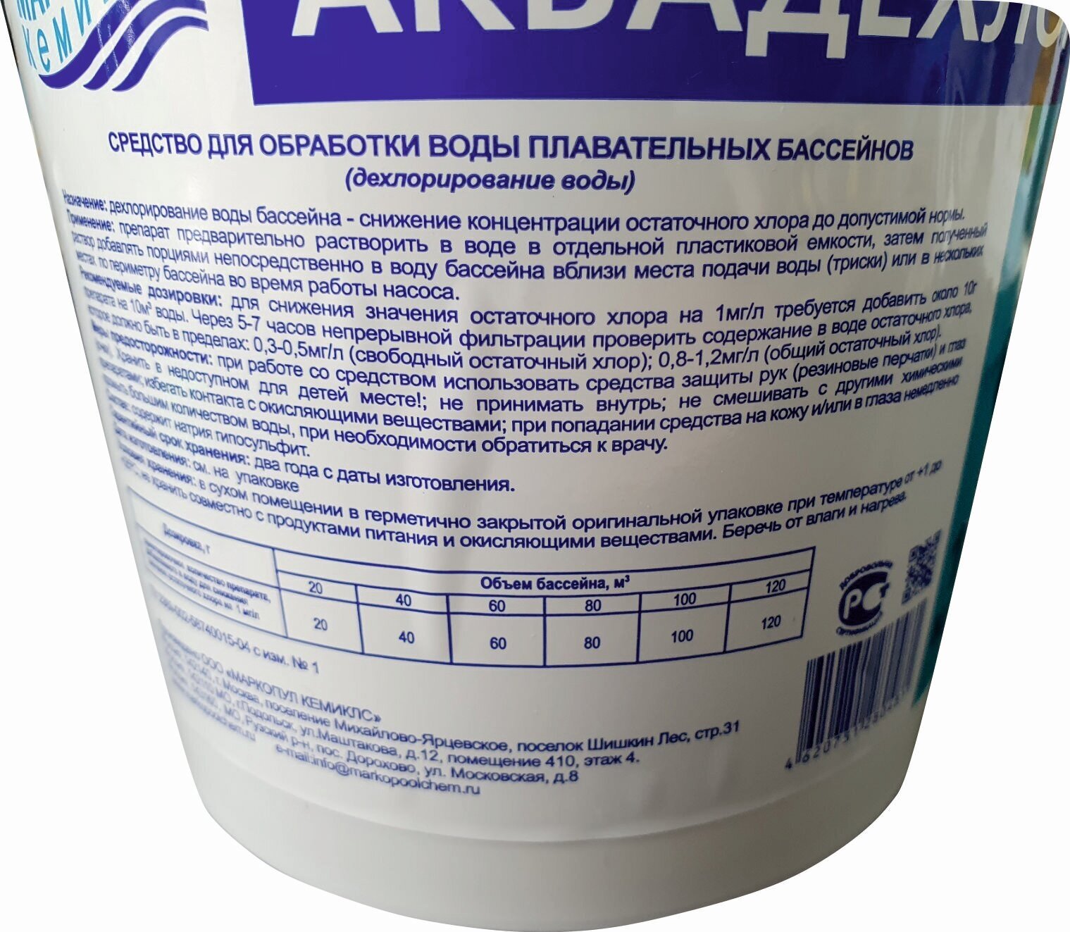 Средство для дехлорации воды Маркопул Кемиклс Аквадехлор 1 кг