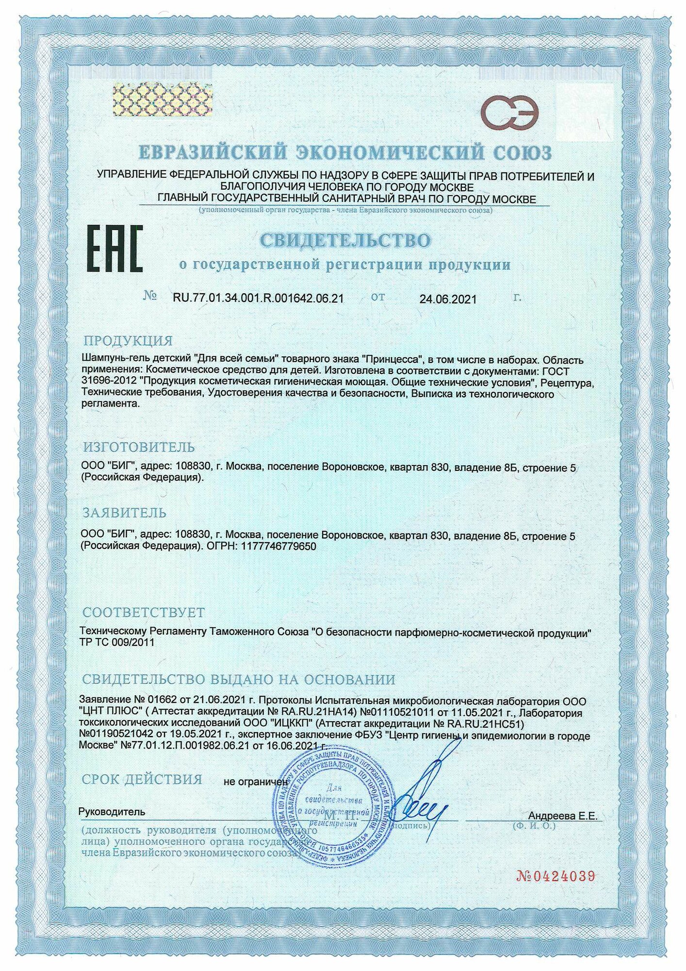 | Фирма-производитель | ООО БИГ |