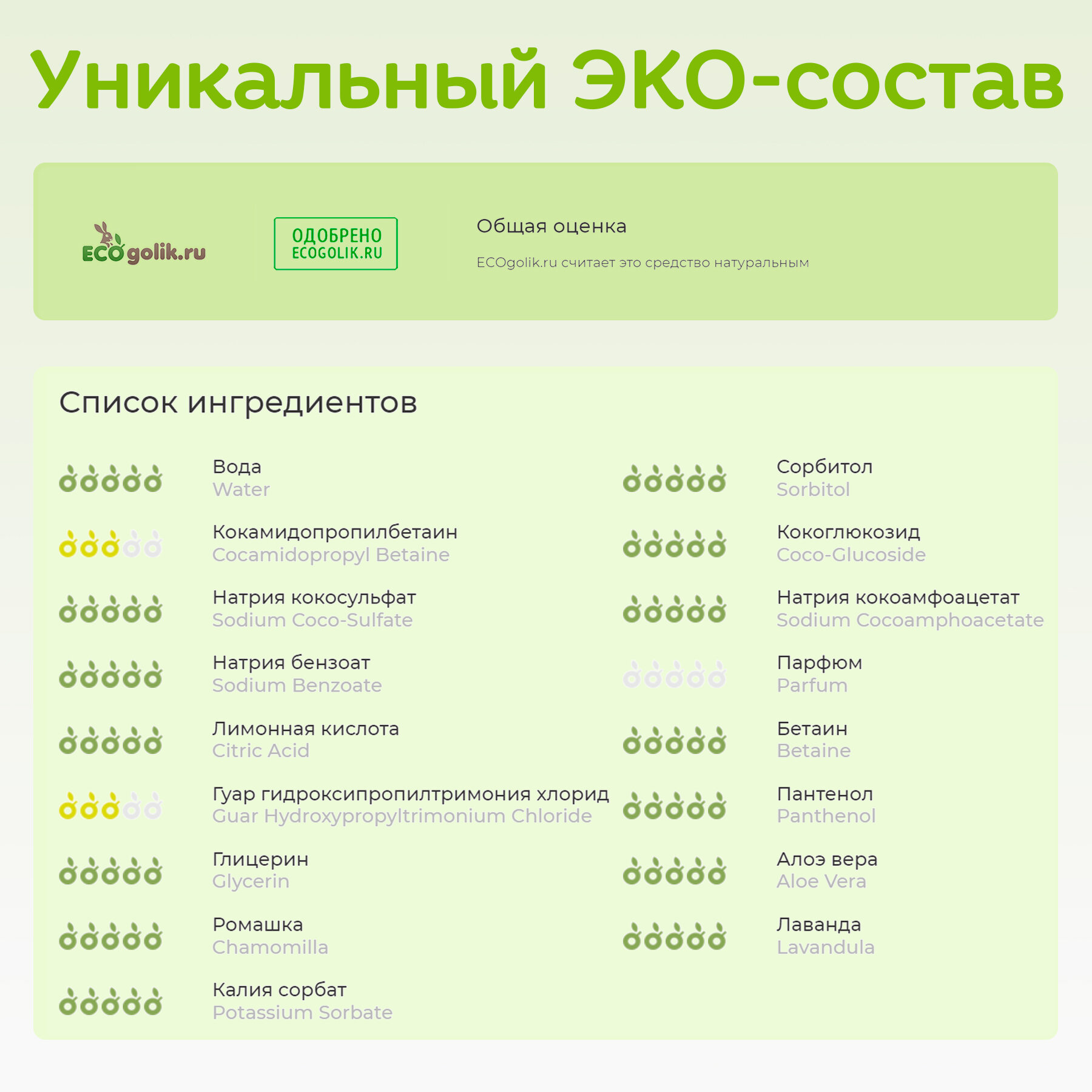 | Особенности состава | без консервантов; без отдушек; без парабенов; без силикона; без сульфатов |