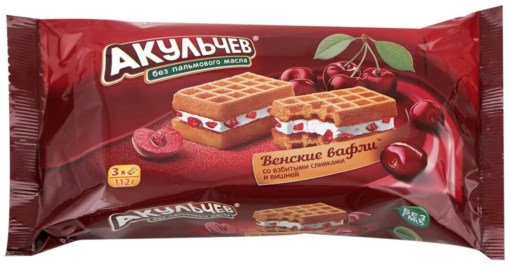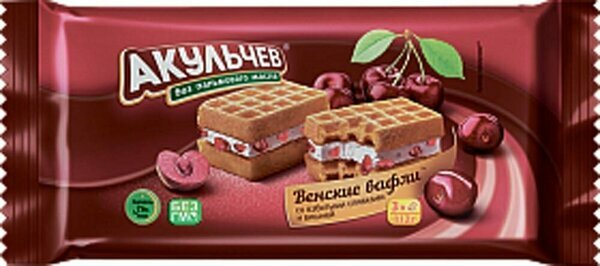Сервис сравнения цен СкидкаГИД предлагает сравнить цены на товар «Вафли мягкие Акульчев Венские со взбитыми сливками и вишней 112 г»