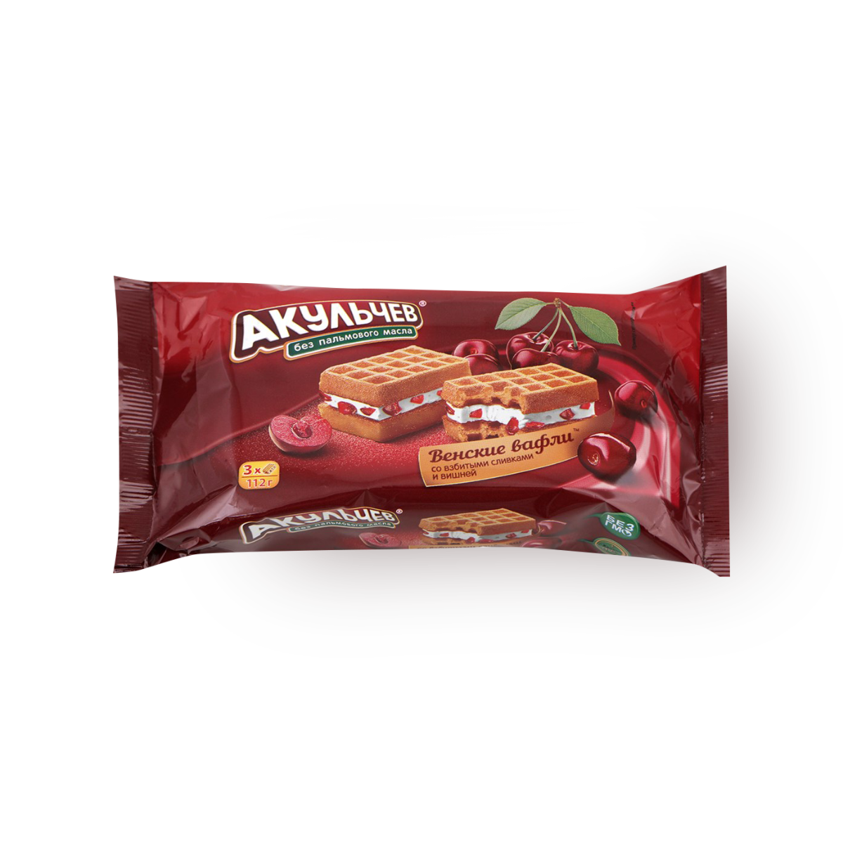 Вафли мягкие Акульчев Венские со взбитыми сливками и вишней 112 г