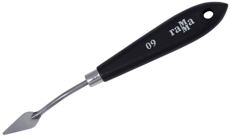Паяный мастихин из нержавеющей стали с удобной плоской ручкой из натурального бука. Сварное соединение ручки и лезвия дает больший угол наклона мастихина к холсту, снижая вероятность случайного касания и смазывания краски. Форма лезвия ромб.