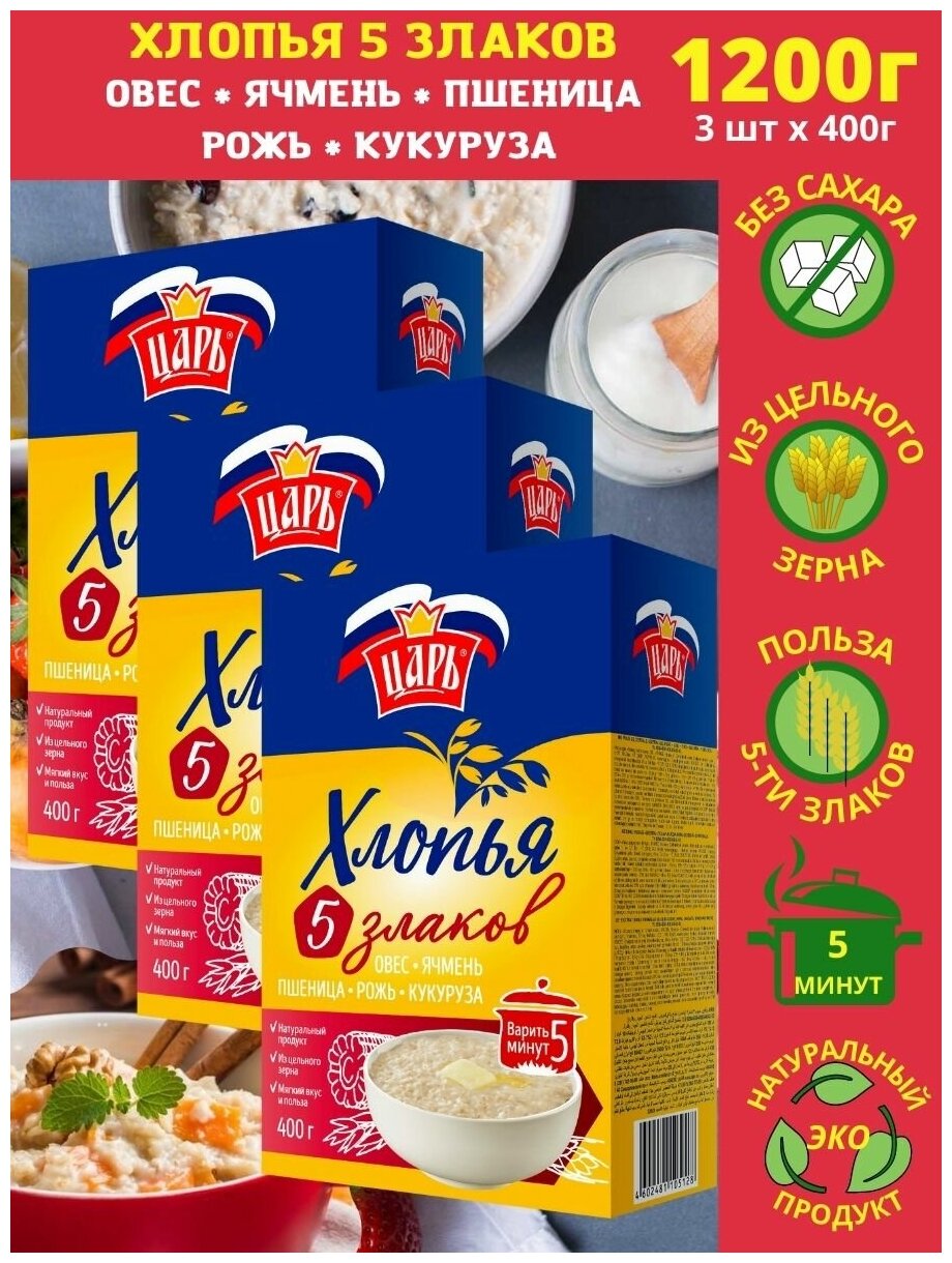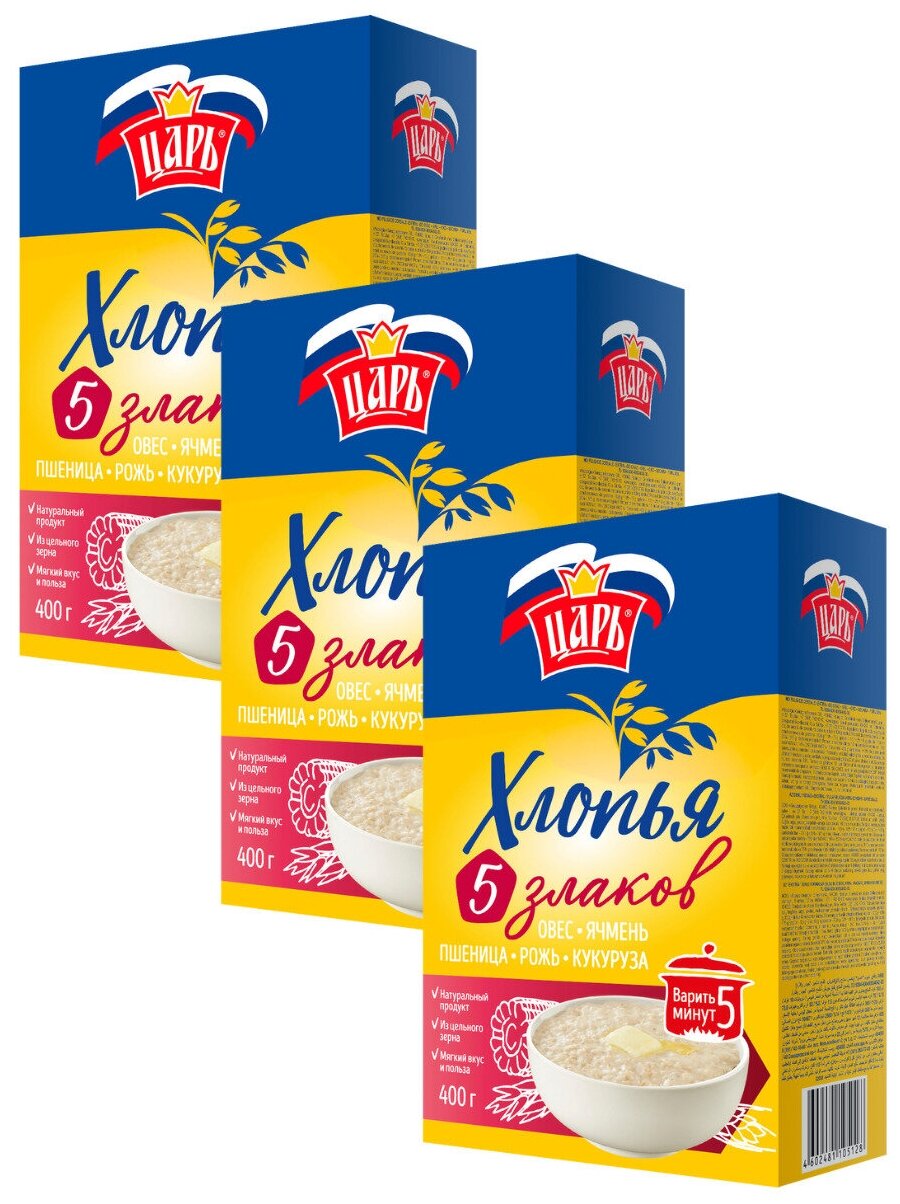 Сервис сравнения цен СкидкаГИД предлагает сравнить цены на товар «Хлопья ЦАРЬ 5 злаков 400 г»
