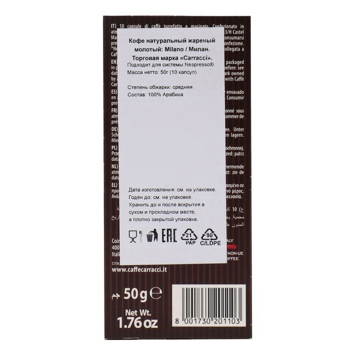 Сервис сравнения цен СкидкаГИД предлагает сравнить цены на товар «Кофе в капсулах Carracci Milano 50 г»