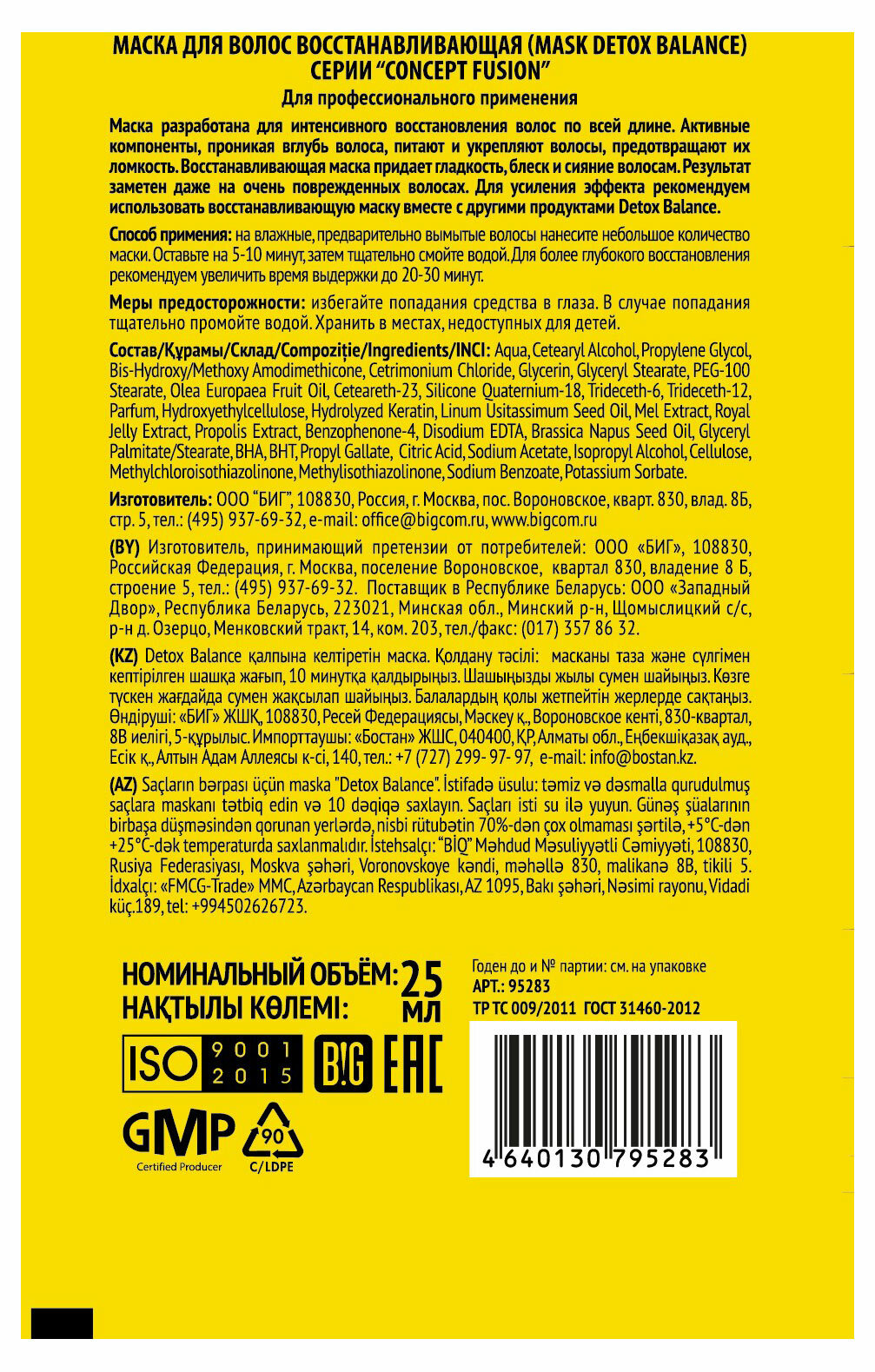 Сервис сравнения цен СкидкаГИД предлагает сравнить цены на товар «Маска для волос Concept Fusion восстанавливающая Detox Balance 25 мл»