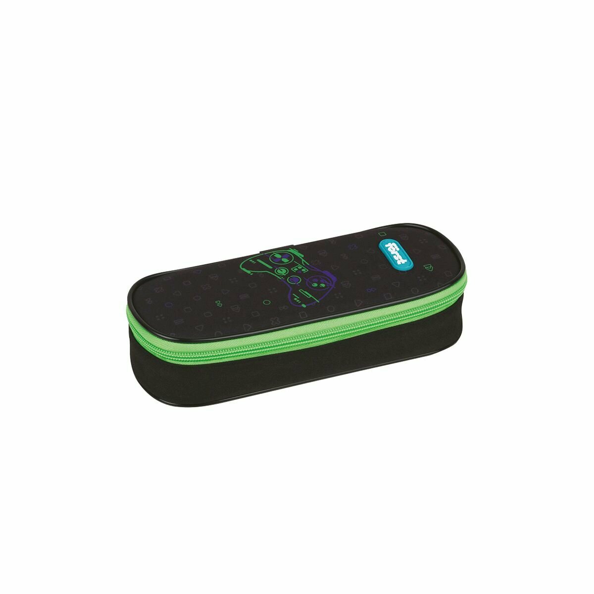 Пенал-футляр корпусный с 1 отделением. Материал лицевой поверхности и подкладки - полиэстер. На верхней откидной крышке расположены крепления-резиночки для канцелярских принадлежностей. Застежка - молния.
