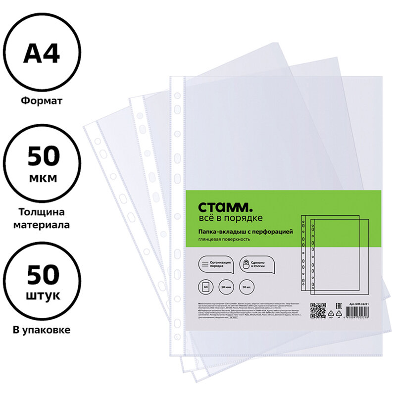 Папка-вкладыш Стамм с перфорацией А4 50 шт