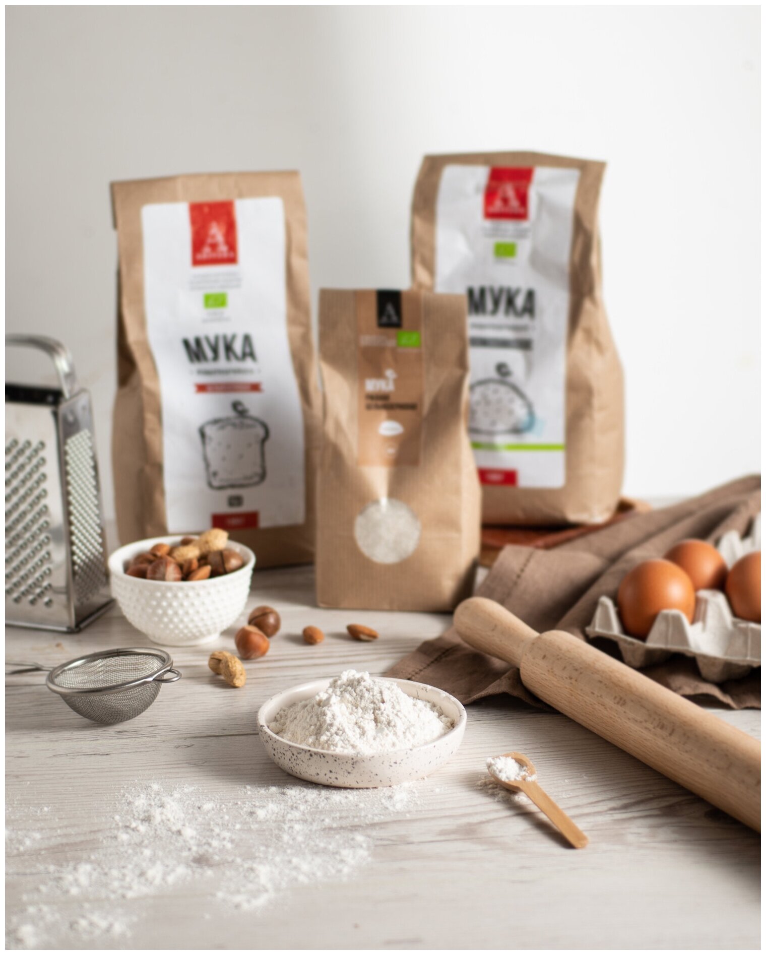 Мука особо тонкого помола из мягких сортов пшеницы. Состоит из тонкоизмельченных (0,1-0,2 мм) частиц эндосперма, преимущественно внутренних слоев. Хороша для выпечки сдобных изделий, пирогов, блинов, оладий. Из экологически чистой пшеницы с Европейским Экосертификатом, выращенной в России.
