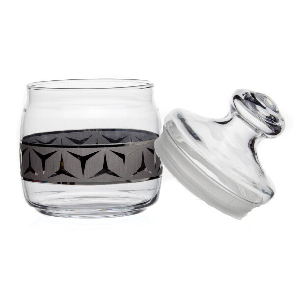 Банка стеклянная декорированная объем 600 мл. Предназначена для хранения сыпучих продуктов.