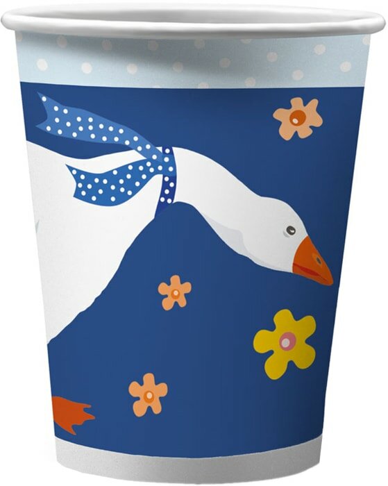 Набор бумажных стаканчиков «Гуси-2» ? стильный элемент для украшения праздничного стола и комнаты в День Рождения. Каждый стаканчик украшен изображением забавных гусей. Набор для детского праздника состоит из 6 бумажных стаканов объемом 250 мл, упакованных в термоусадочную пленку. Стаканчики изготовлены из плотного мелованного картона, который не промокнет во время праздника. Необычный дизайн стаканов с легкостью поднимет настроение гостям и поможет организовать праздник мечты. Одноразовая посуда – простое и стильное украшение для любой вечеринки.