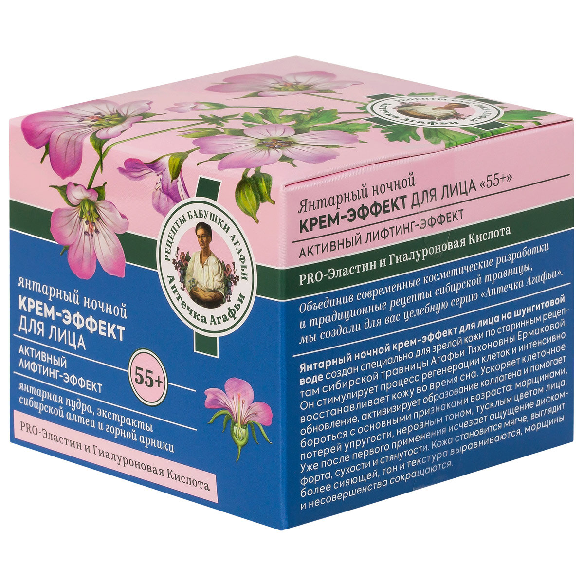 Крем-эффект для лица Рецепты Бабушки Агафьи Янтарный ночной 55+ 50 мл