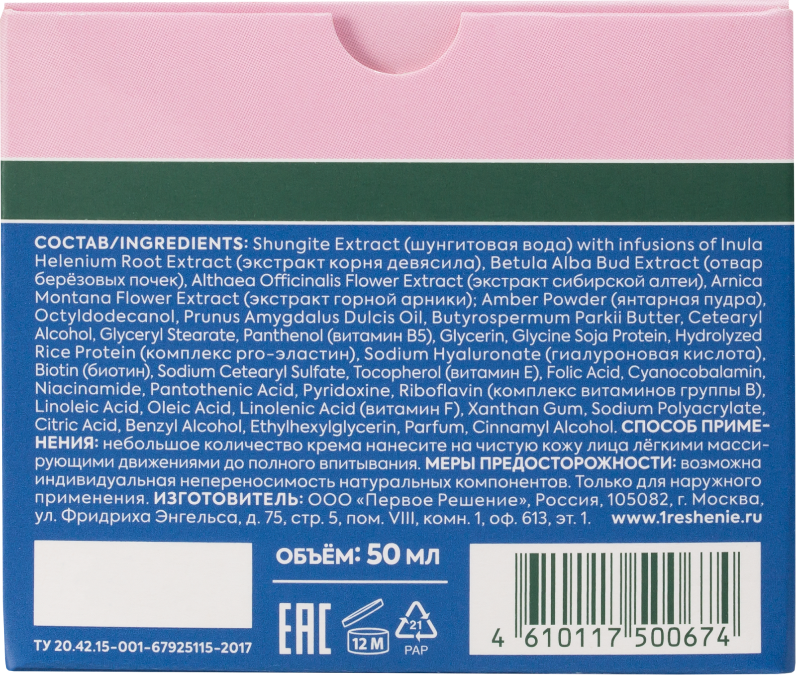 | Состав | shungite extract (шунгитовая вода) with infusions of inula helenium root extract (экстракт корня девясила); betula alba bud extract (отвар берёзовых почек); althaea officinalis flower extract (экстракт сибирской алтеи); arnica montana flower extract (экстракт горной арники); amber powder (янтарная пудра); octyldodecanol; prunus amygdalus dulcis oil; butyrospermum parkii butter; cetearyl alcohol; glyceryl stearate; panthenol; glycerin; glycine soja protein; hydrolyzed rice protein (комплекс pro-эластин); sodium hyaluronate (гиалуроновая кислота); biotin (биотин); sodium cetearyl sulfate; tocopherol (витамин е); folic acid; cyanocobalamin; niacinamide; pantothenic acid; pyridoxine; riboflavin (комплекс витаминов группы b); linoleic acid; oleic acid; linolenic acid (витамин f); xanthan gum; sodium polyacrylate; citric acid; benzyl alcohol; ethylhexylglycerin; parfum; cinnamyl alcohol |
