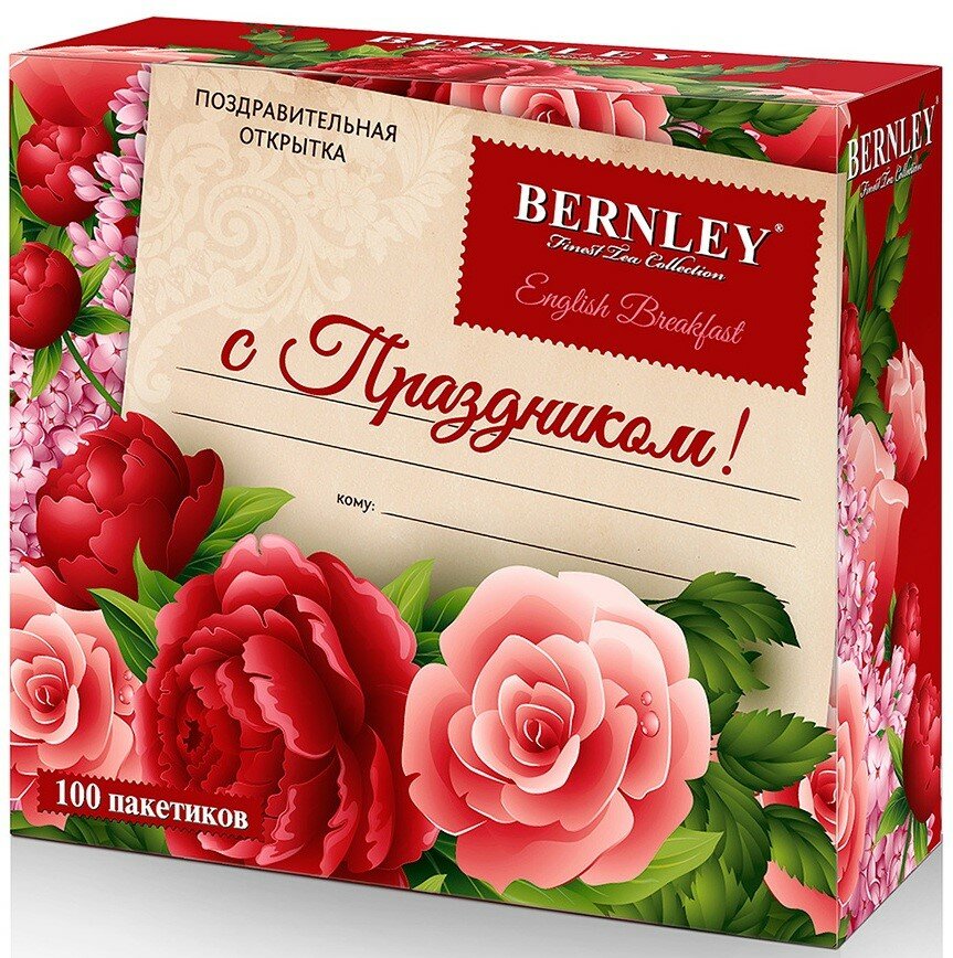 Чай Bernley English breakfast черный 100 пакетиков - классический черный чай, выращенный на Цейлонских плантациях и приготовленный в лучших английских традициях. Напиток обладает насыщенным чайным вкусом и ароматом.