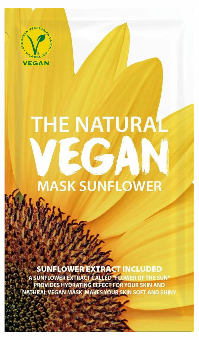 Веганская маска содержит экстракт подсолнуха, который обеспечивает интенсивное увлажнение кожи. Натуральные ингредиенты, содержащиеся в маске, делают кожу мягкой и сияющей. Маска из 100% хлопка идеально прилегает к коже, благодаря чему впитывание активных ингредиентов происходит чрезвычайно эффективно.